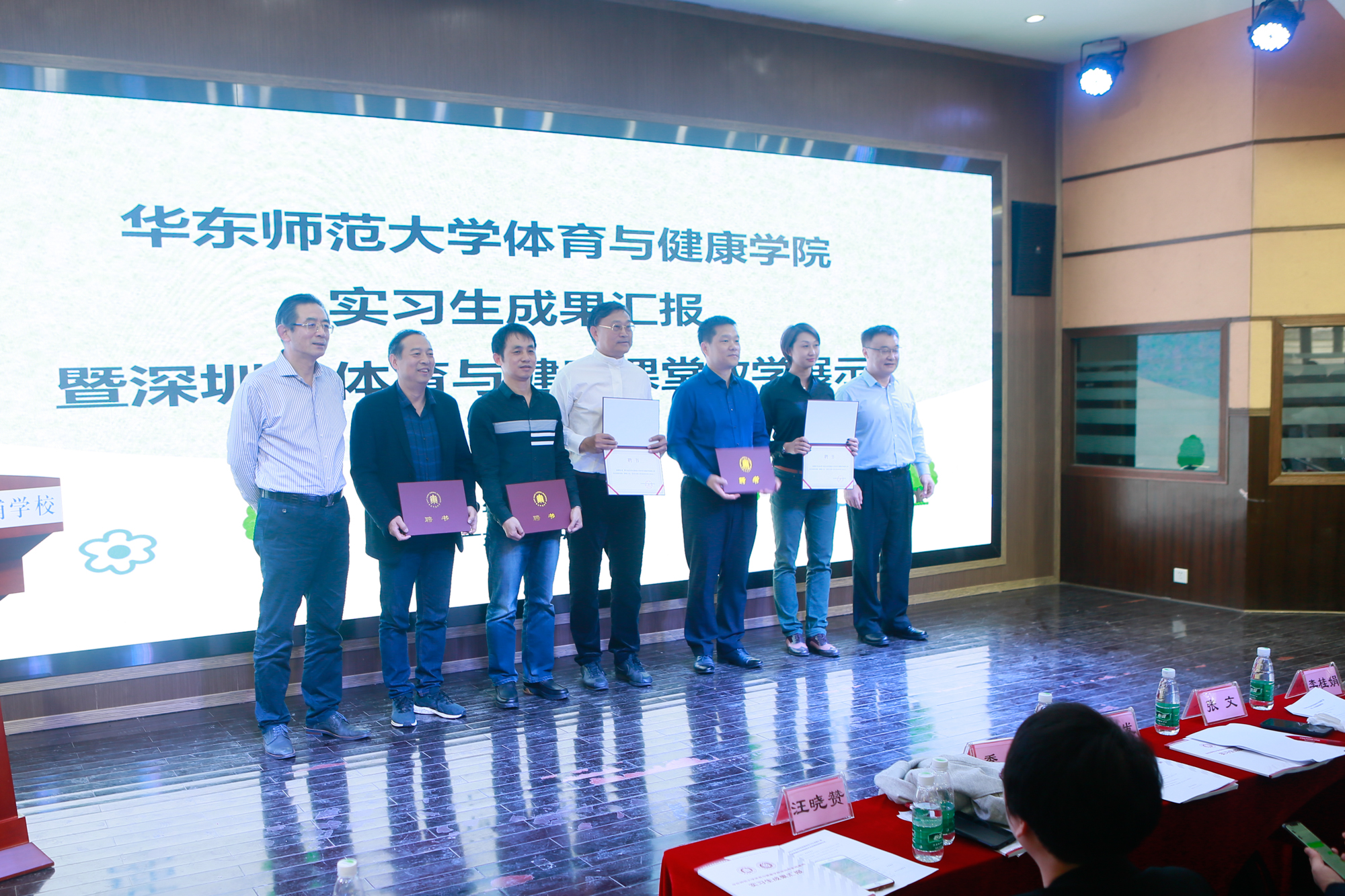 随后,与会领导为优秀实习生、优秀指导教师以及华东师大体育与健康学院硕士研究生兼职导师颁发证书和聘书。