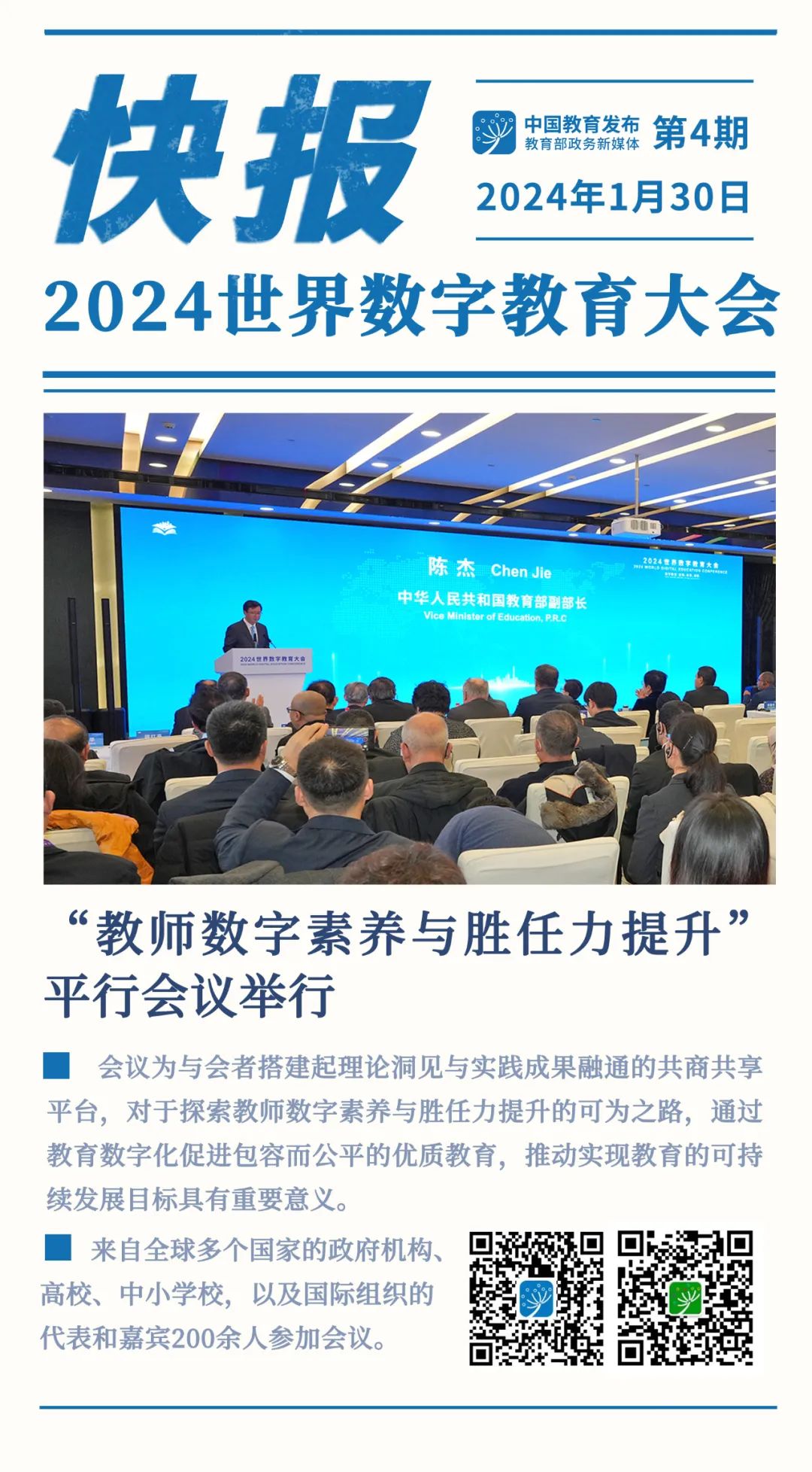 1月30日,2024世界数字教育大会平行会议一“教师数字素养与胜任力提升”在沪举行。中国教育部副部长陈杰、佛得角共和国教育部部长阿玛杜·克鲁斯、库克群岛政府教育部长瓦因·莫科罗亚、保加利亚教育与科学部副部长玛瑞埃塔·吉欧艾娃、土库曼斯坦教育部副部长阿扎特·阿塔耶夫、乌兹别克斯坦教育发展科学与方法中心主任瓦希德·哈米多夫、上海市委副秘书长燕爽、3245澳门新莆京党委书记梅兵出席开幕式,开幕式由教育部教师工作司副司长黄小华主持。