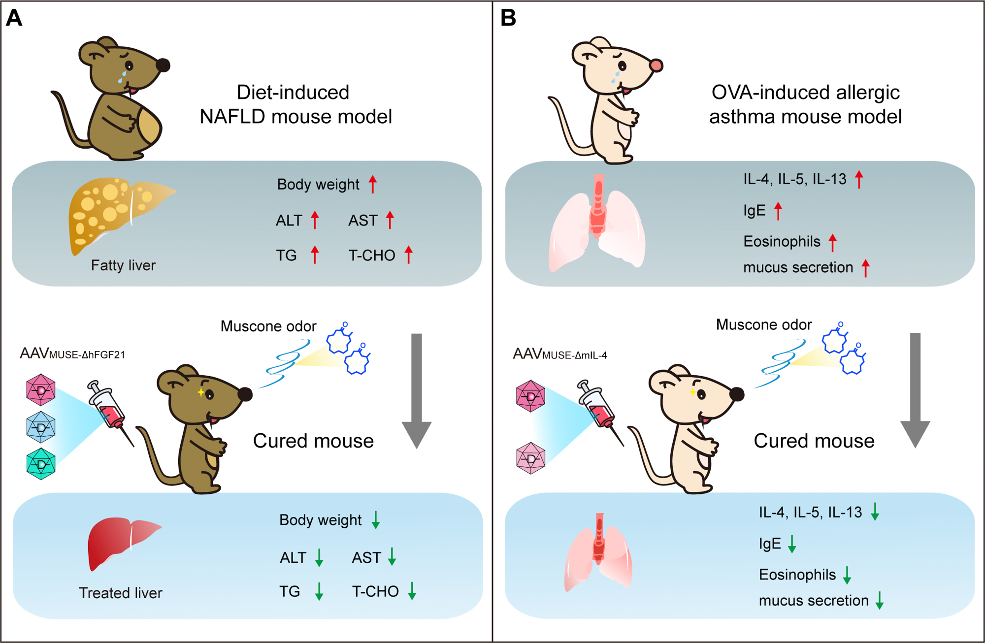 AAVMUSE在非酒精性脂肪性肝炎以及过敏性哮喘模型中的治疗