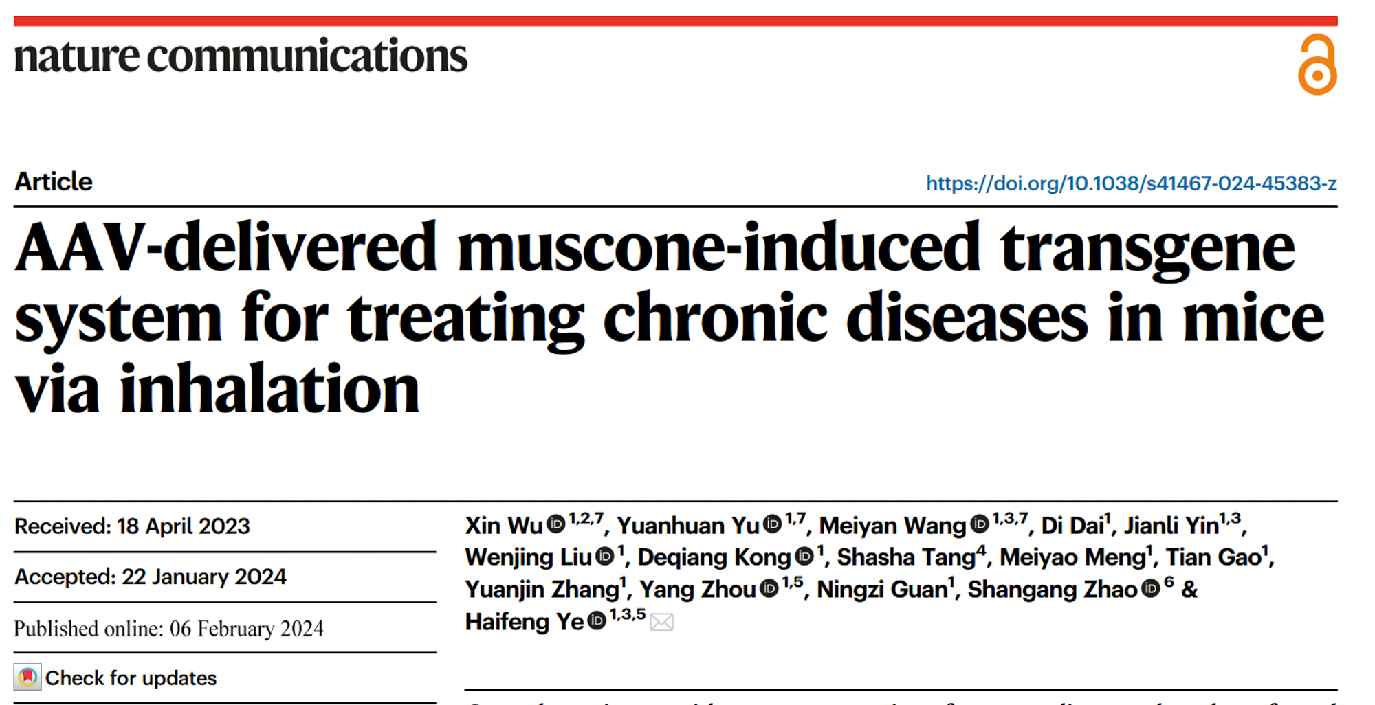 3245澳门新莆京生命科学学院叶海峰研究团队成功开发了“香气分子”麝香酮(muscone)调控的基因表达精准控制系统,并将其装载在腺相关病毒AAV基因治疗载体中(命名为AAVMUSE),实现无针无痛、患者依从性高的可控式基因疗法。这一创新成果“AAV-delivered muscone-induced transgene system for treating chronic diseases in mice via inhalation”于2024年2月6日发表在国际期刊 Nature Communications。