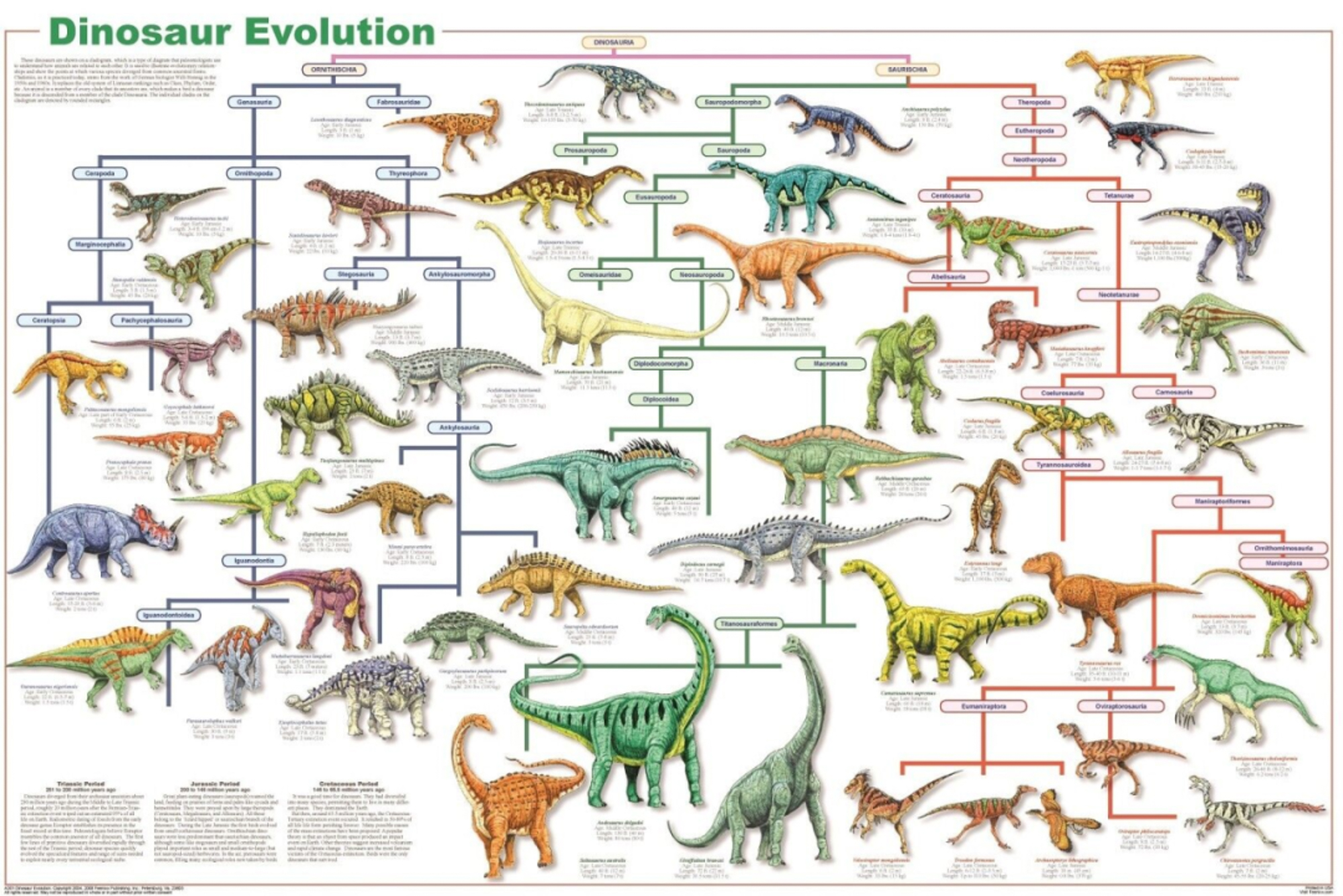 分别生活在中生代三个纪三叠纪、侏罗纪、白垩纪的典型恐龙代表