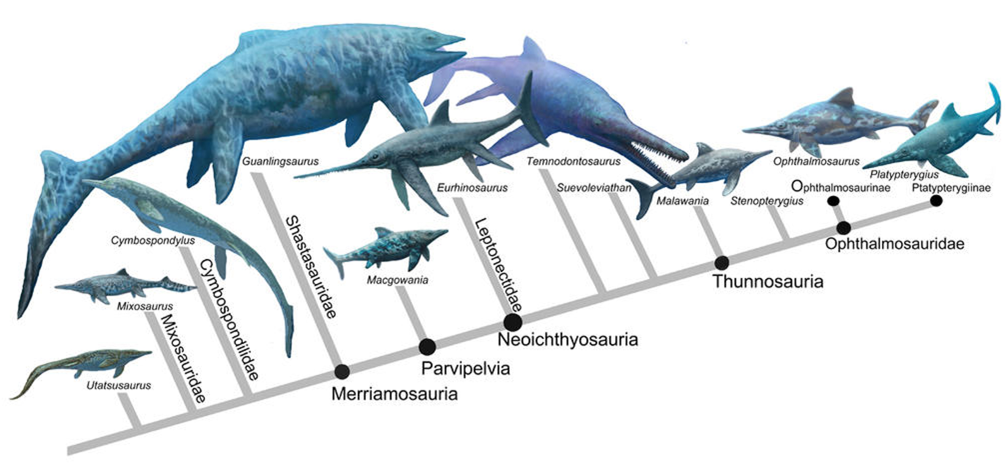 至于鱼龙类,在分类学上是鱼龙超目(Ichthyopterygia)成员的泛称。