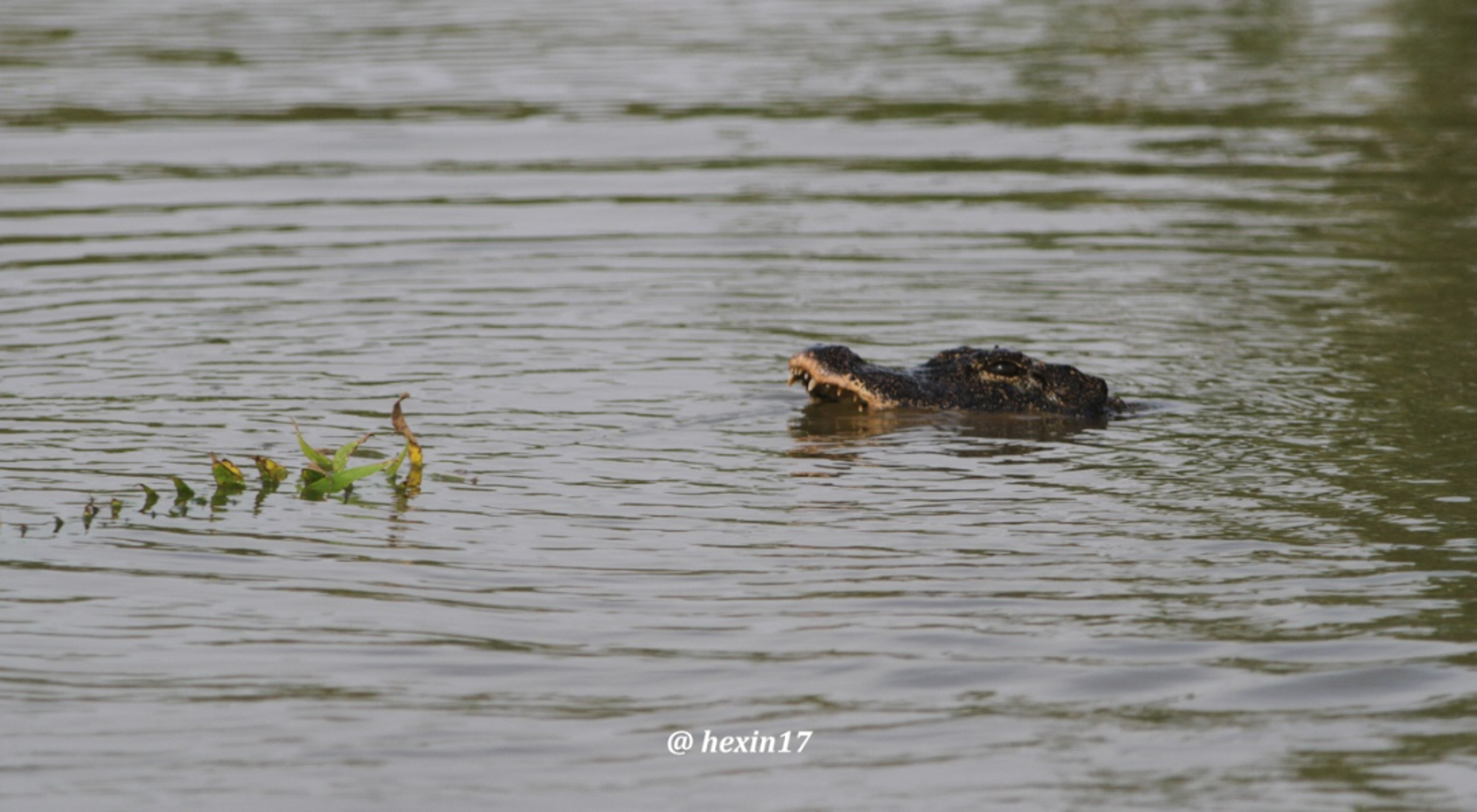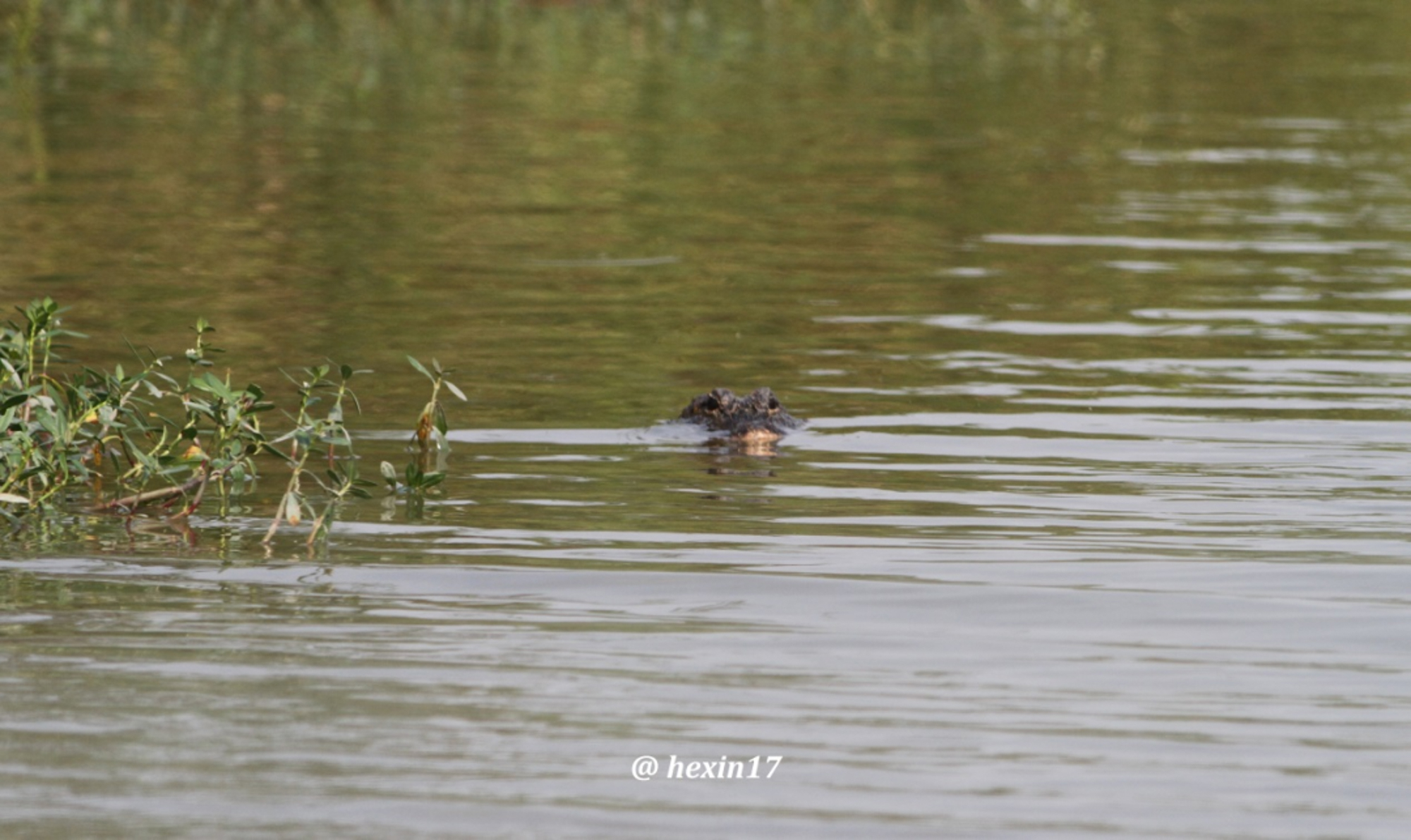 在水中畅游的扬子鳄何鑫 摄于上海崇明东滩