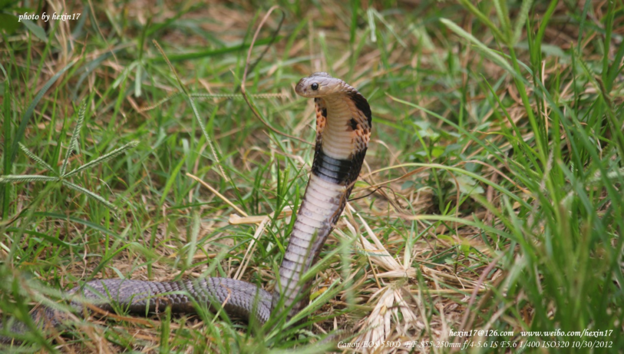 昂起身子的舟山眼镜蛇 何鑫 摄于台中