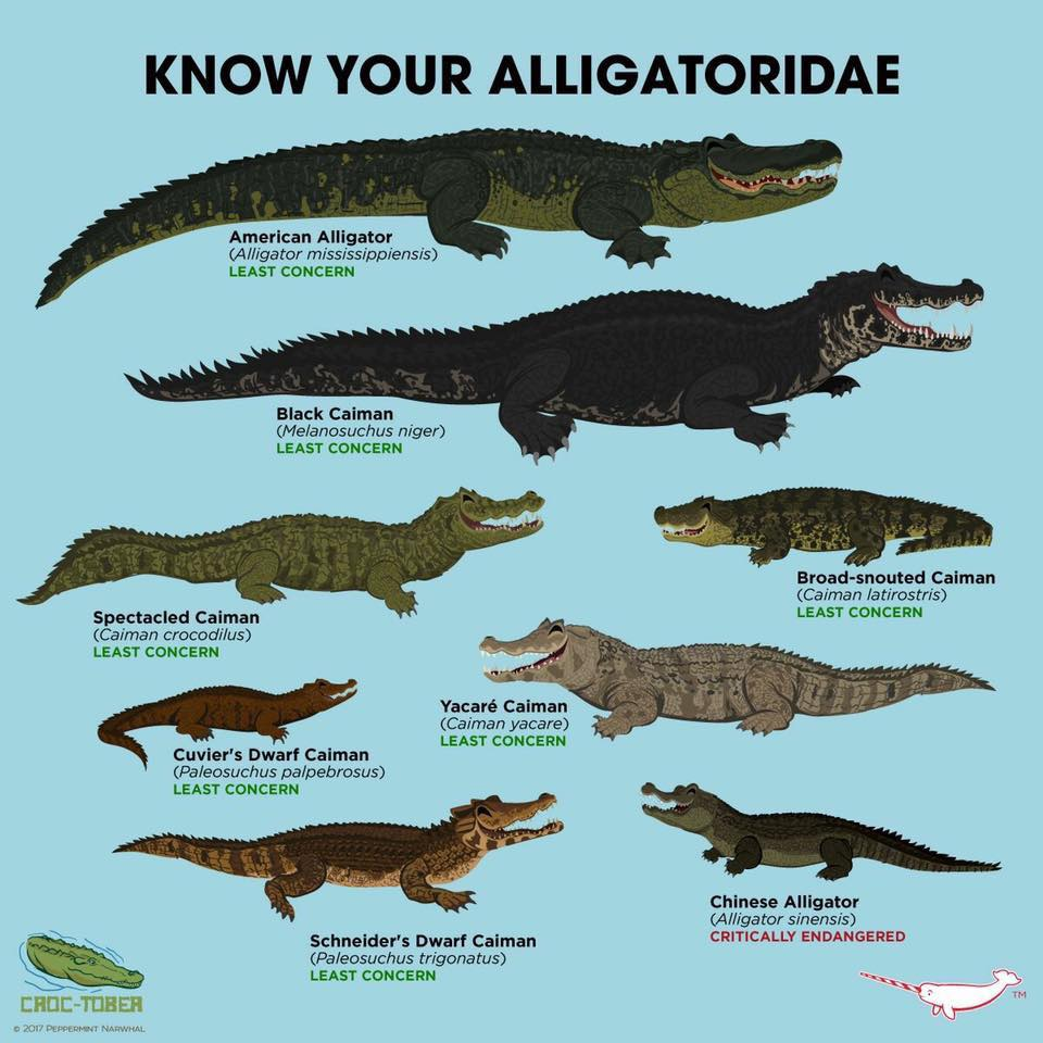 而鼍科的物种常常也被称为短吻鳄,现存只有八种,除了主要在南美洲分布的几种凯门鳄外,就属北美洲分布的密西西比鳄(Alligator mississippiensis),和只在我国有分布的扬子鳄(Alligator sinensis)最为出名了。而扬子鳄也是我国如今仅有的一种鳄类,它们被列为国家一级重点保护野生动物。