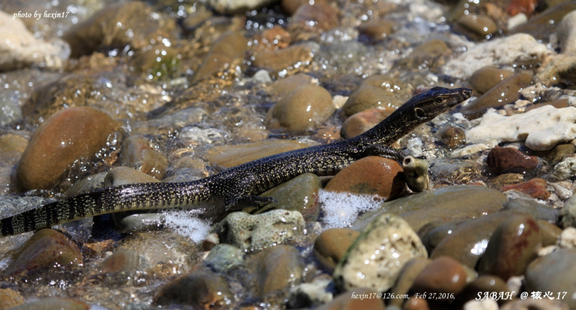 水岸边的一只圆鼻巨蜥亚成体 何鑫 摄于马来西亚