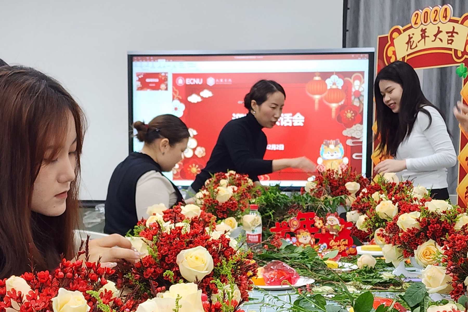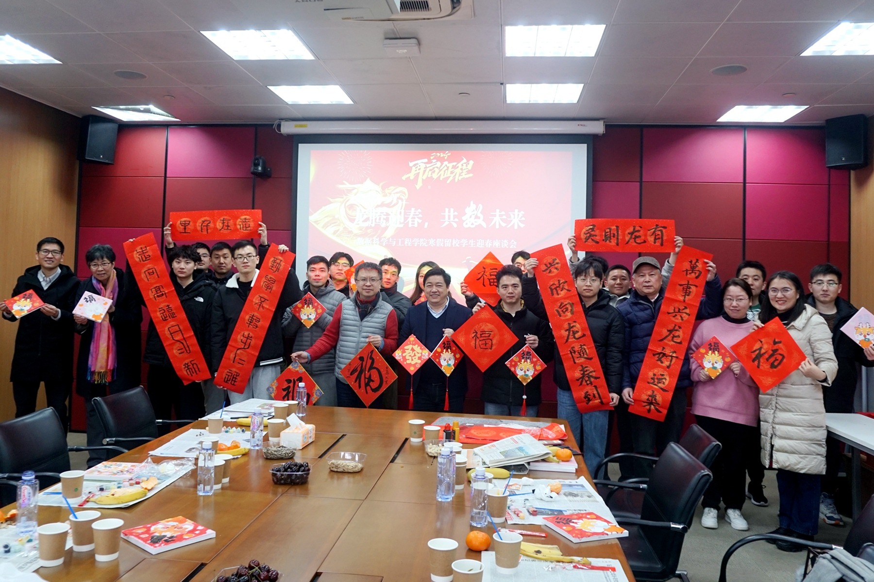 数据科学与工程学院陆续举办了“留校暖日,羽动新春”师生羽毛球赛、“龙腾迎春,共‘数’未来”留校学生迎春座谈会等师生同乐活动。师生们的运动热情展现了朝气蓬勃、积极向上的精神风貌;在暖意融融的迎春座谈会上,学院师生一起“畅想2024”、“书画2024”——畅谈新年愿望、手绘数字油画、书写对联福字,师生同乐,喜迎新春!