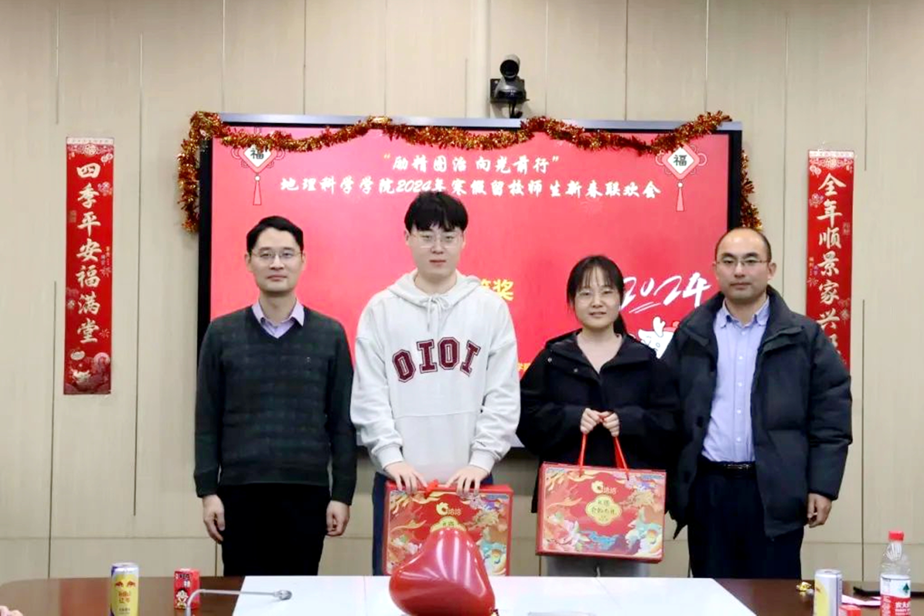“励精图治 向光前行”地理科学学院寒假留校师生新春茶话会上,学院教师与40余名留校学生参与活动。新春至,留校师生团聚一堂,聚焦“三大卓越工程”“五个一流行动计划”,畅谈奋斗目标,共同许下美好愿望。