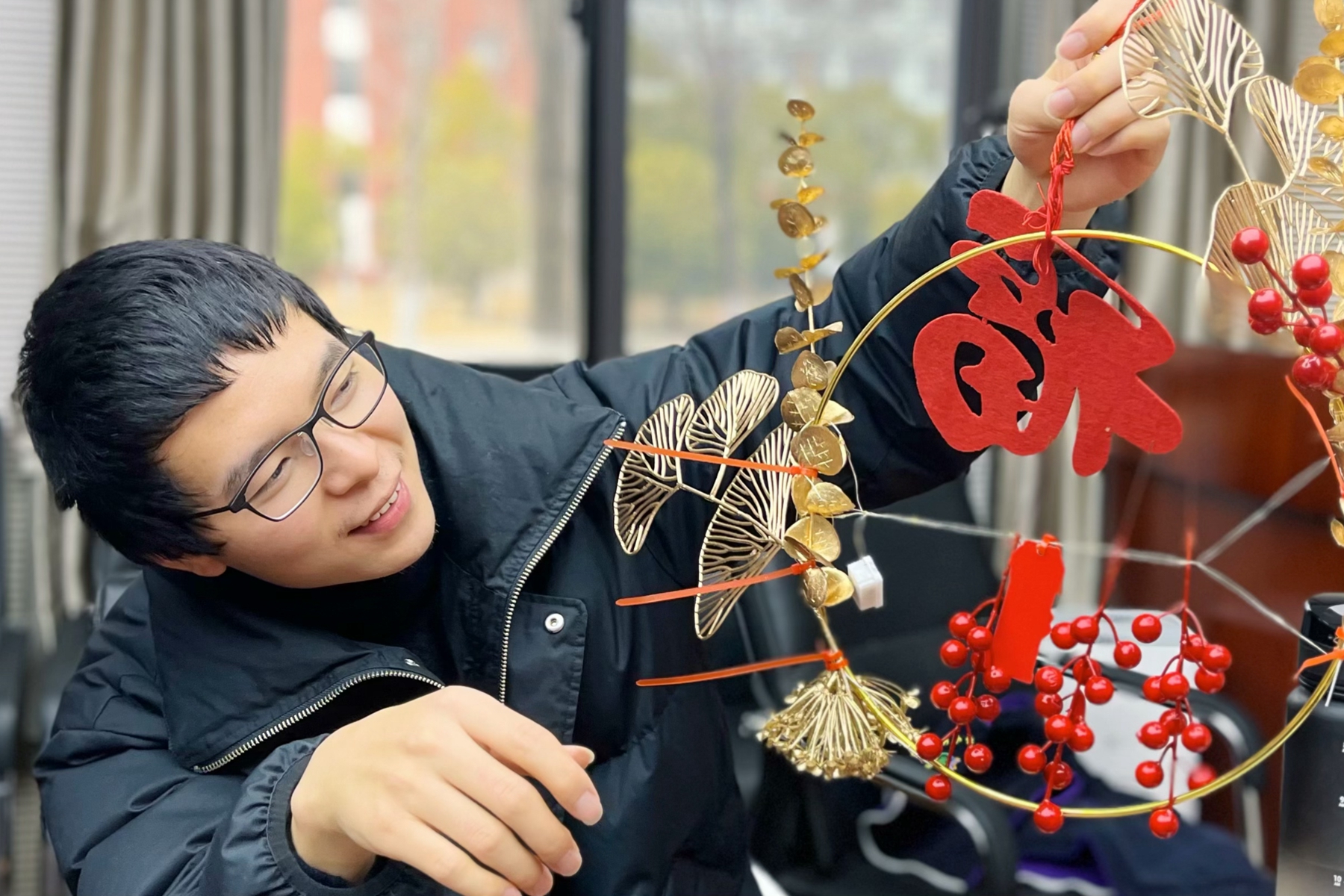 喜气洋洋迎新春,数学科学学院留校师生在数学楼举行新春同乐会,制作新春福环,将对新一年的美好愿景许在其中,共享欢乐时光。