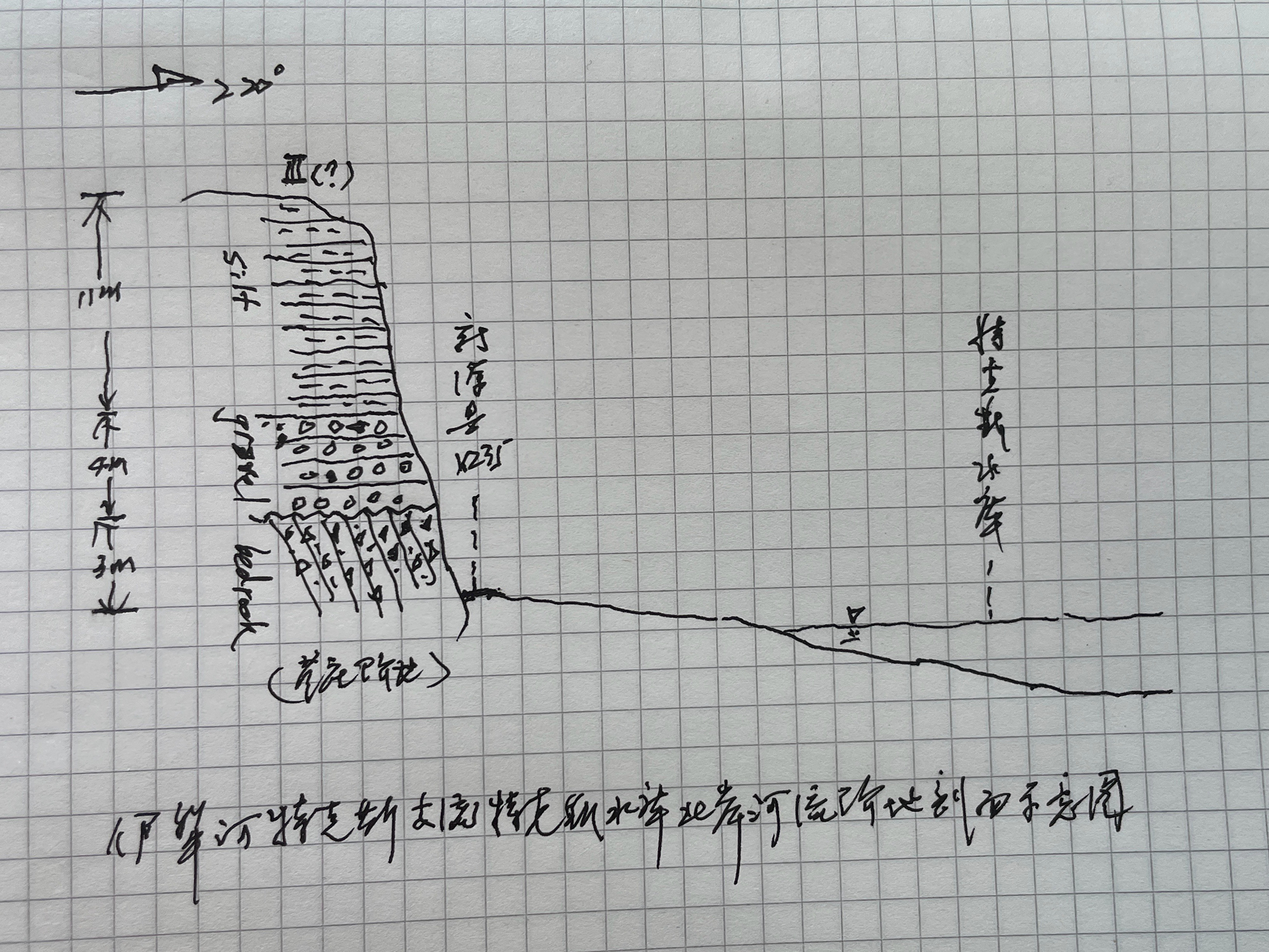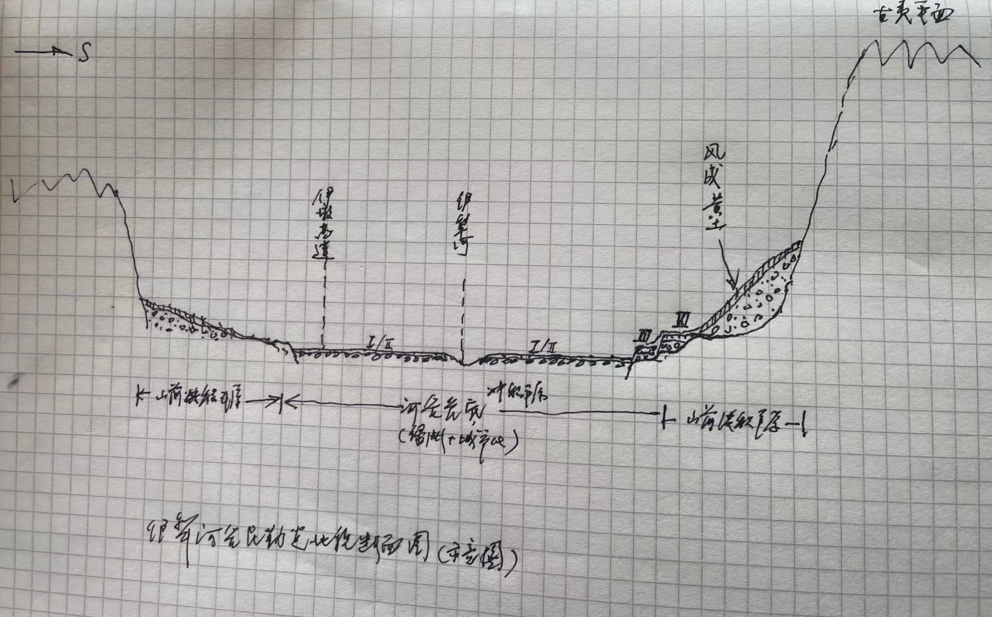 在野外实习时,戴雪荣给学生绘制地貌剖面示意图
