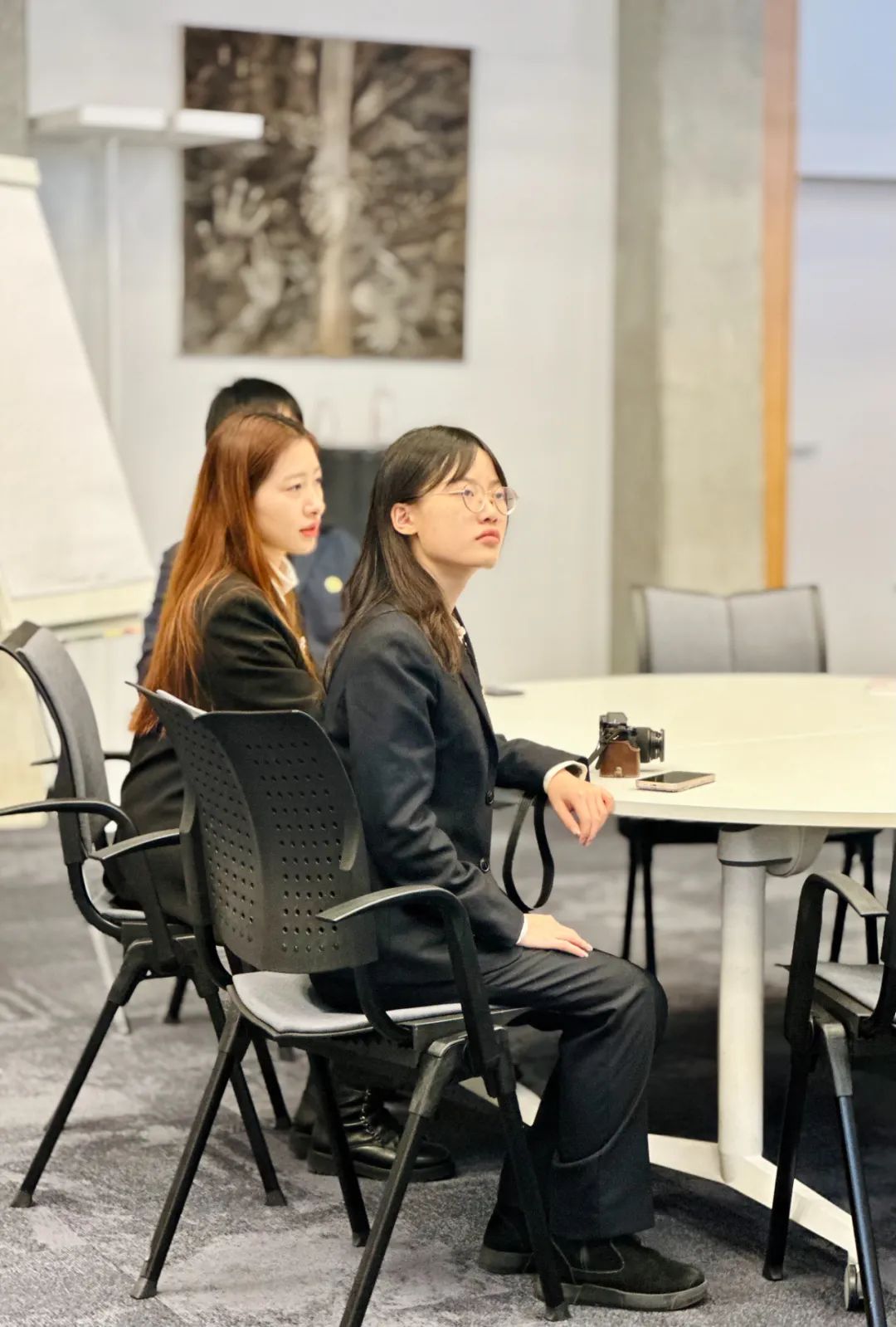 参访学生团队在联合国会议室中开展了模拟联合国活动。外语学院本科生饶斯羽谈道:“各国就一事项达成协议是十分困难的,包含了太多利益的取舍和辩论的技巧。联合国给予了每个国家平等发声的权利,致力于合作和达成共识,是十分了不起的存在。”