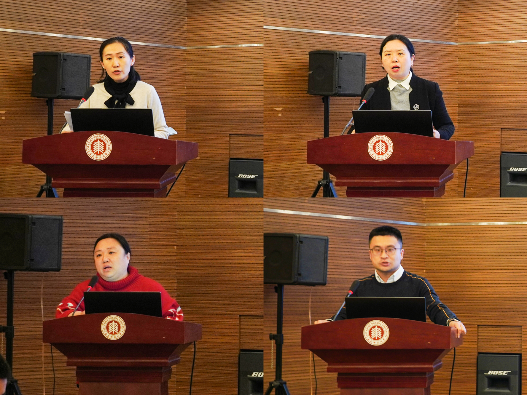 在汇报环节,光华书院副院长谢雨杉,大夏书院副院长王郦玉,党委学(研)工部副部长、心理健康教育与咨询中心主任庄瑜,生命科学学院党委副书记涂皘汇报了“全育人”理念的学风建设、数字赋能精准思政与智慧社区、“幸福研习”启智润心和全学段生涯指导与实践育人等专题交流情况。