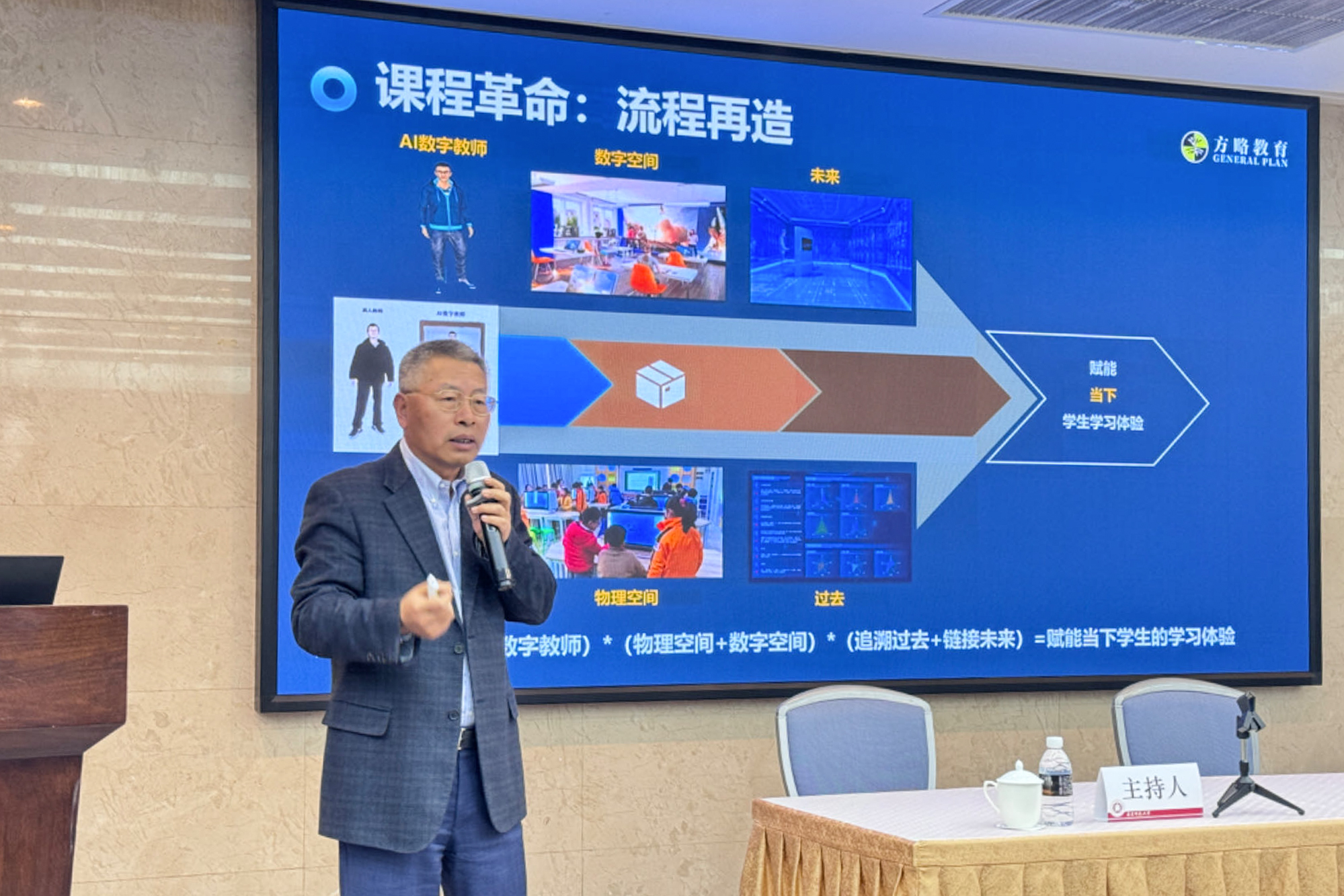 上海方略门口教育科技有限公司创始人兼董事长杨大平以“AI赋能的课堂教学新范式”为题进行报告。他指出,AI赋能教学场景重构、流程再造、大规模个性化学习。基于国家新课程标准,公司自主研发的AI数字教师能够辅助真人教师开展互动式、启发式、探究式、体验式课堂教学,并在现场进行了演示,依托浦东新区的国家级信息化实验区、宝山区的“双实验区”,已创新发展了若干教育数字化转型课堂新样态。