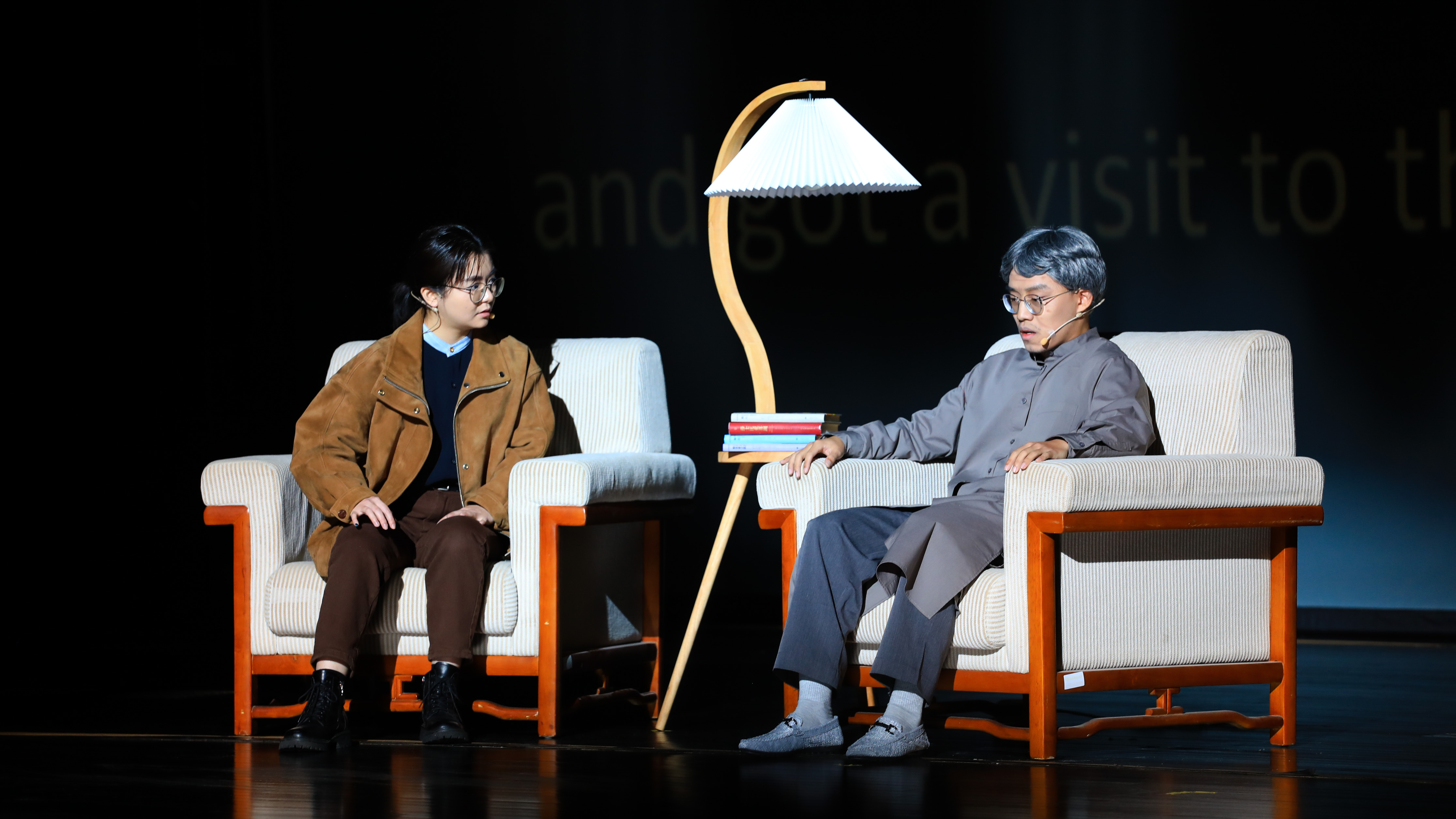 对谈结束,线下线上的观众踊跃提问,现场气氛极为热烈。当文学青年遭遇文学巨匠,一场灵魂碰触灵魂、心灵点亮心灵的文学梦工厂仿佛从幻想进入现实世界。正如校友格非老师的万花筒之喻,参与这场文学盛宴的观众们,就是聚集在同样一个时空里共同在感知、触摸和理解文学梦的万花筒。