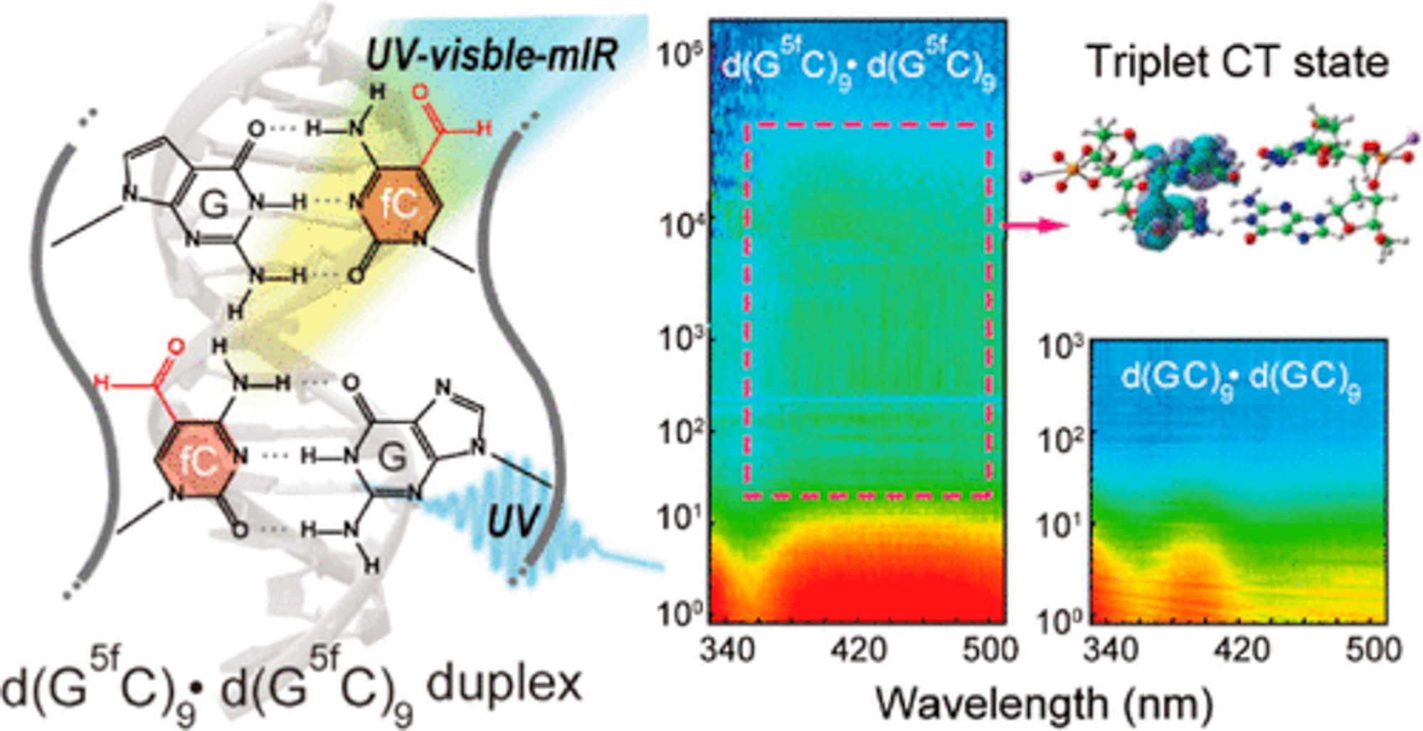 精密光谱科学与技术国家重点实验室陈缙泉教授团队, 针对表观遗传修饰位点多是DNA紫外光损伤突变热点问题,建立模型表观遗传修饰DNA双链分子,利用超快时间分辨光谱技术结合量子化学计算,首次在DNA双链体系中揭示了电荷转移三重态的超快生成过程。相关成果于2024年1月9日发表在 J. Am. Chem. Soc.上。