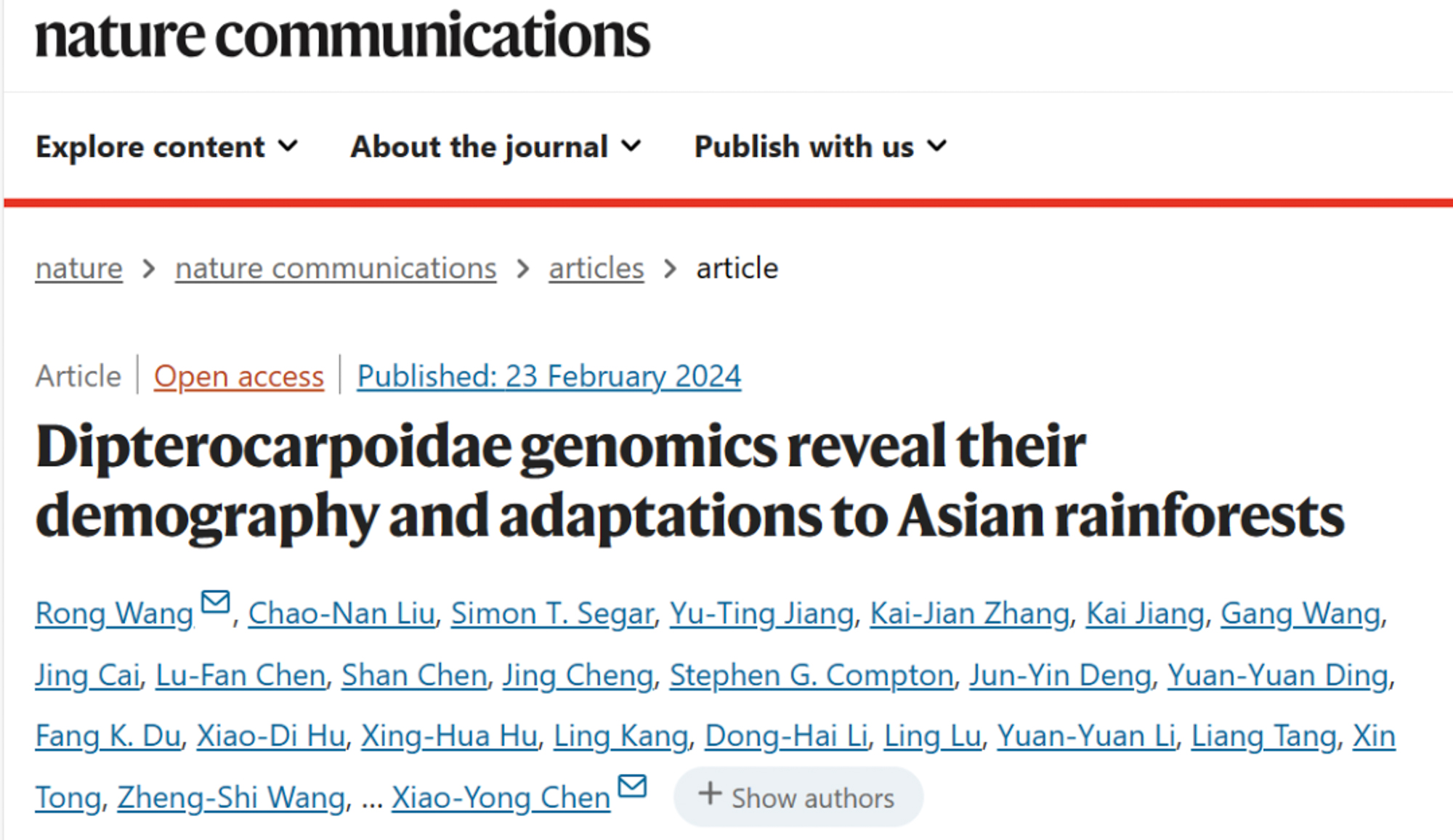 1.揭示亚洲龙脑香物种适应的分子基础与致濒机制