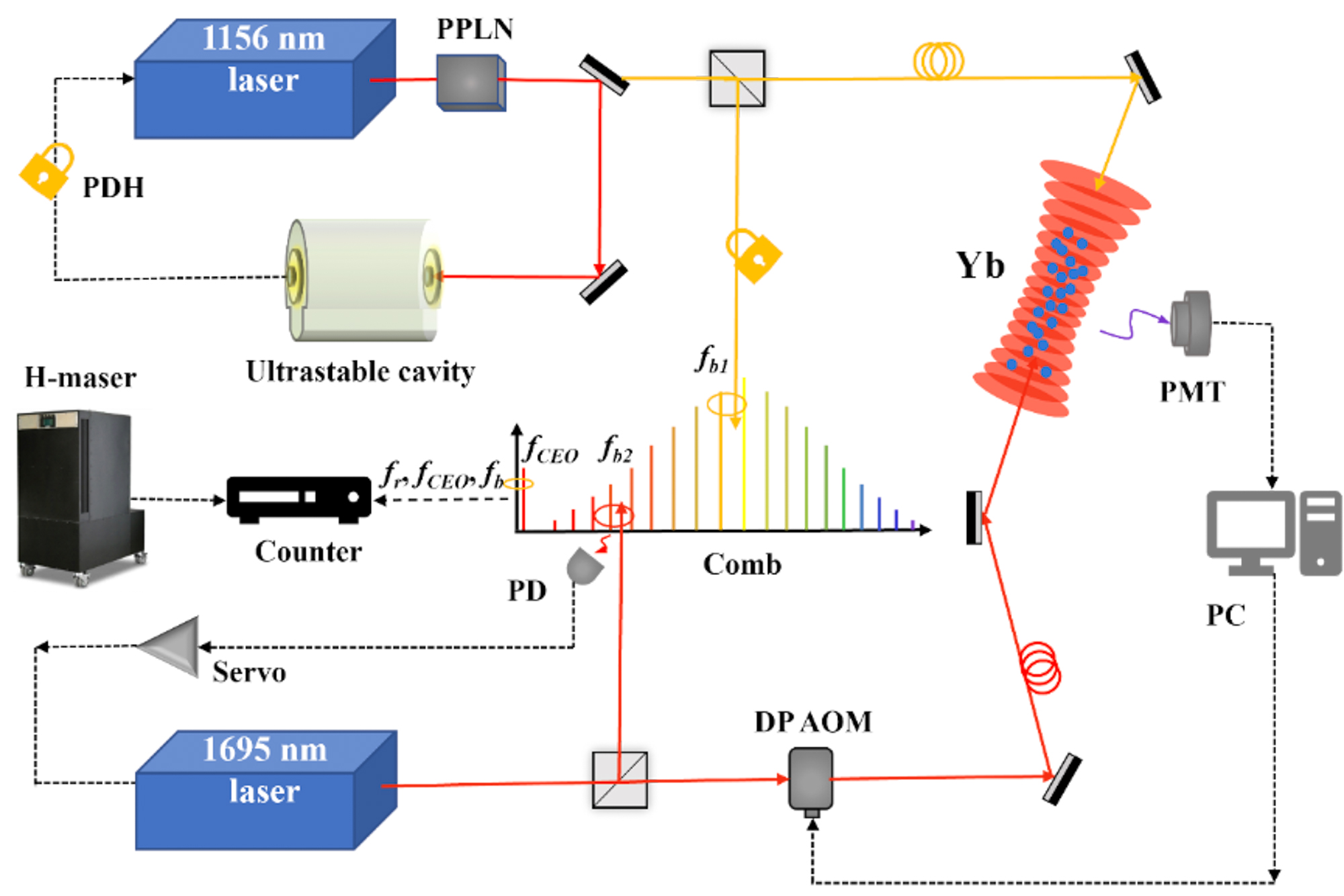 精密光谱科学与技术国家重点实验室徐信业教授团队在国际上首次精确测量了镱原子中基于内壳层电子跃迁的1695nm新钟跃迁的绝对频率值,并找到研制相应光钟所必需的光晶格的“魔术波长”精确位置;进一步精确测量了与1695nm内壳层跃迁相关的一些重要的物理量,如超极化率、张量极化率和超精细结构能级的磁偶极系数等;最终在国际上首次实现了内壳层镱原子光钟的闭环锁定,即初步实现了内壳层镱原子光钟。