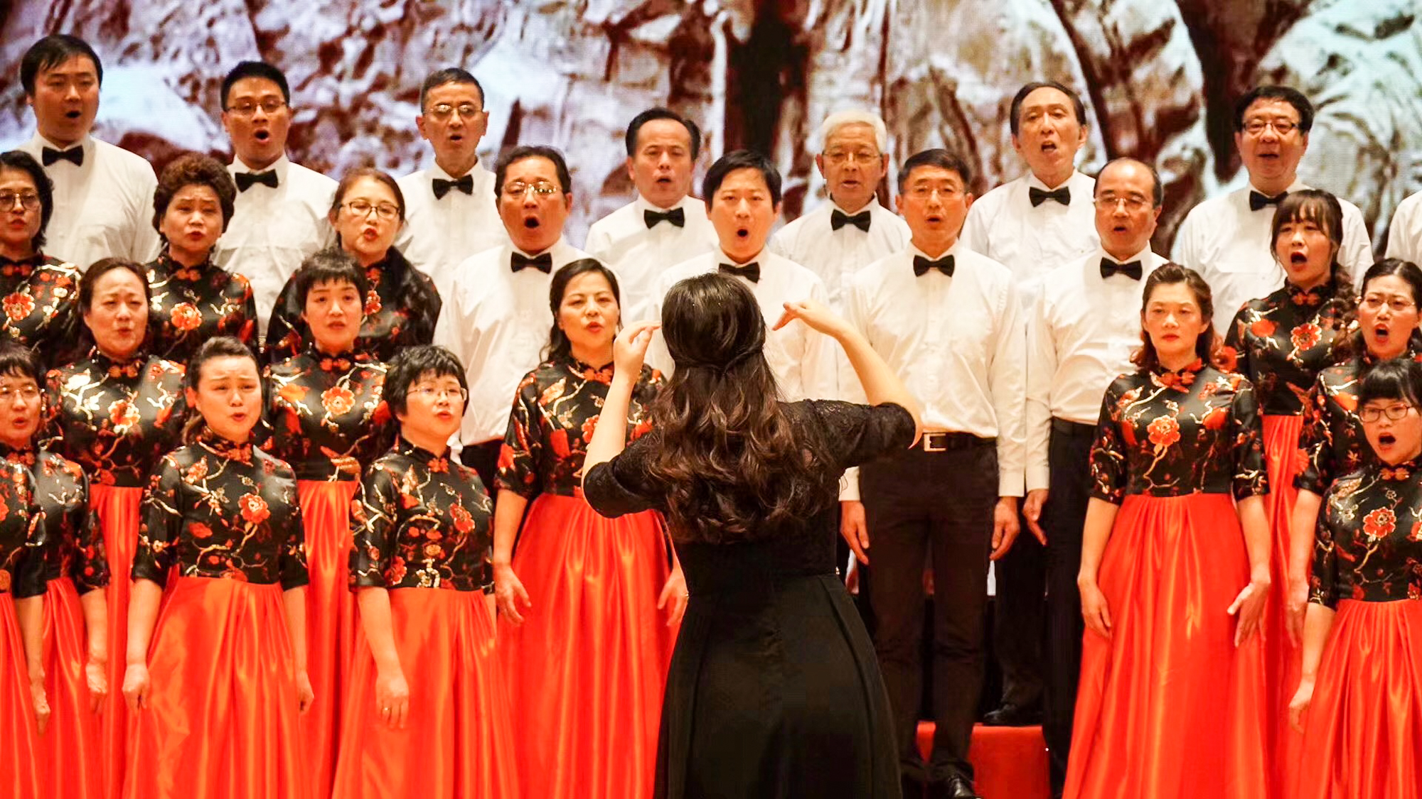 我校教工合唱团演唱的是混声合唱《十送红军》,每一声都流露着革命根据地人民对红军的深厚感情以及对革命胜利的强烈期盼,配合着大屏幕的视屏播放,他们深情动人的演绎赢得了全场热烈的掌声。