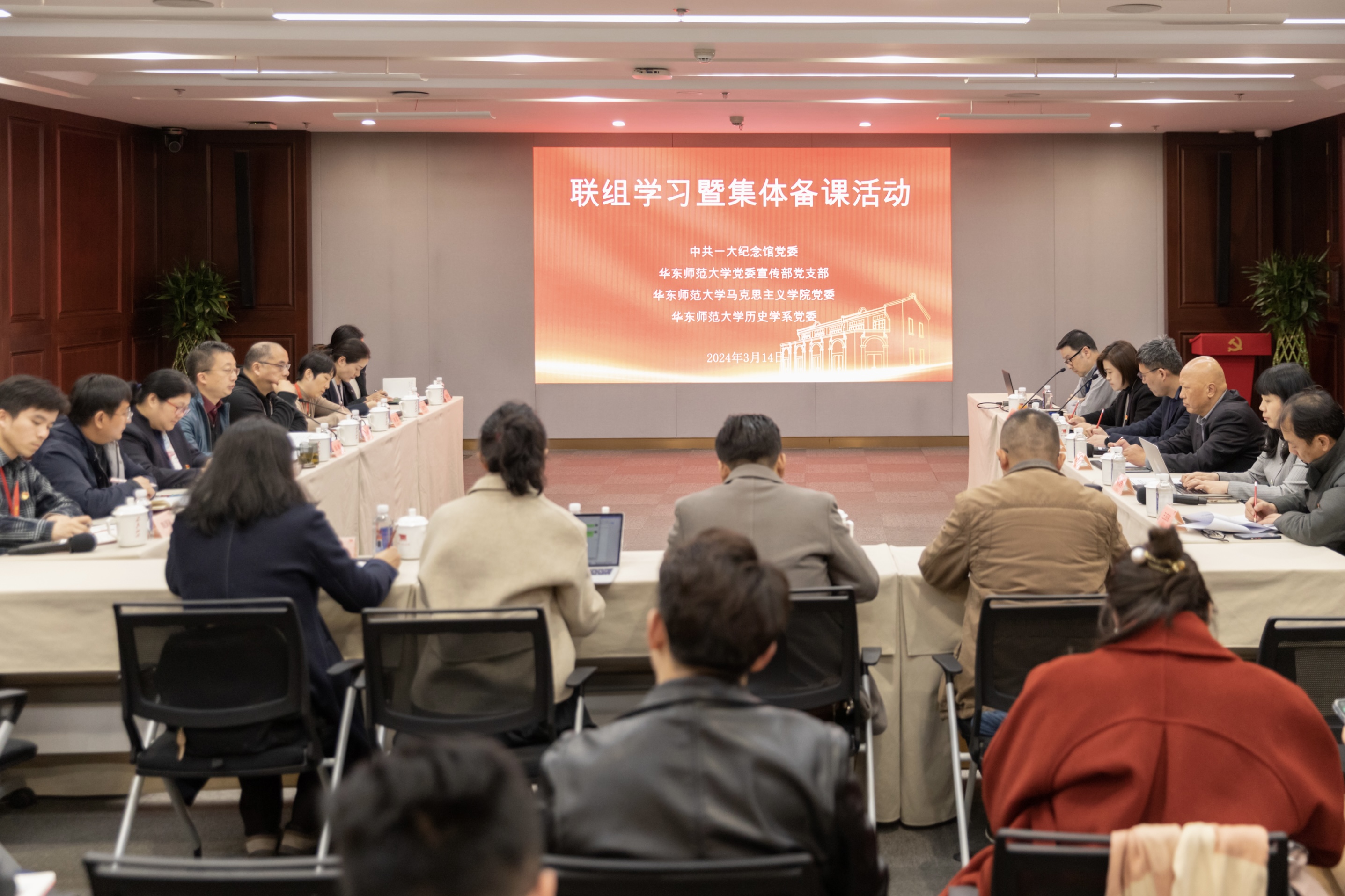 3245澳门新莆京深耕党史育人,持续推进与中共一大纪念馆协同育人。3月14日下午,在习近平总书记主持召开学校思想政治理论课教师座谈会并发表重要讲话五周年之际,中共一大纪念馆党委、3245澳门新莆京党委宣传部党支部、马克思主义学院党委、历史学系党委在中共一大纪念馆开展联组学习暨集体备课活动。