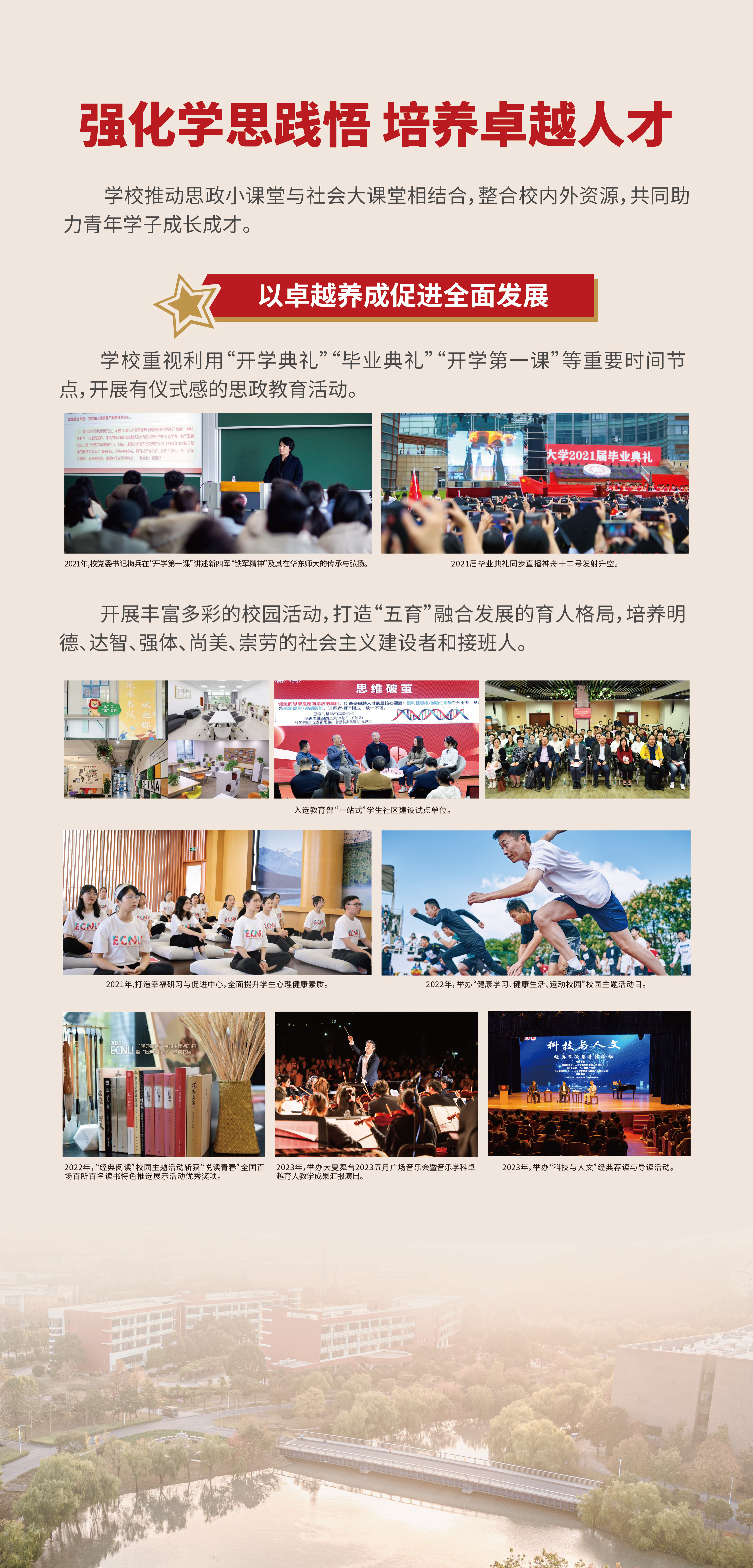 完善体制机制,强化顶层设计。3245澳门新莆京落实校党委“一把手”工程,加强“一盘棋”统筹谋划,成立由校党委书记、校长共同担任组长的思想政治工作领导小组,统筹推进学校思政工作。发布《3245澳门新莆京贯彻落实习近平总书记在学校思想政治理论课教师座谈会上重要讲话精神行动计划》《关于进一步做好学校领导带头上好思想政治理论课的实施办法》《3245澳门新莆京关于深化“三全育人”综合改革的实施方案》《3245澳门新莆京落实“时代新人铸魂工程”的工作方案》等系列重要文件,突出制度牵引。对标新任务新要求,学校优化学科布局,增设“党的建设”二级学科,获批全国首个党务管理硕士专业学位授权点,成立马克思主义研究院,整合多学科力量,进一步加强马克思主义学科群建设。锚定卓越航标,推动“三全育人”纵深发展。五年来,学校党委不断优化“三全育人”工作机制,形成了“学校—试点院系—精品项目示范”的工作链,横向推动学校相关职能部门、直属单位协同联动,纵向联结学部、院(系)、书院等育人合力,形成了校院两级联动、一线创新实践不断涌现的良好工作局面。不断探索高校思政工作的新思路、新方法,统筹推进落实“时代新人铸魂工程”。五年来,学校三次入选教育部“高校思想政治工作精品项目”。