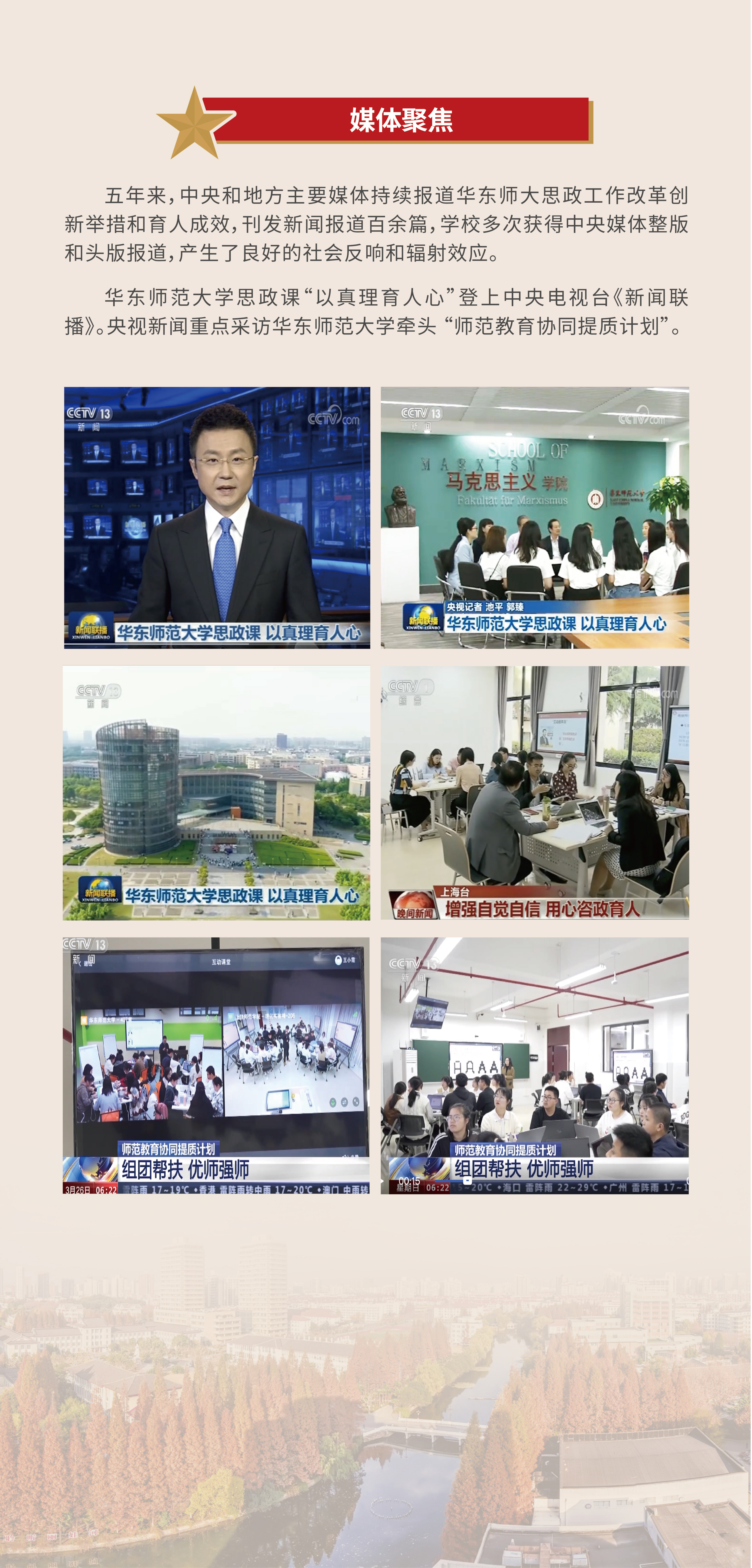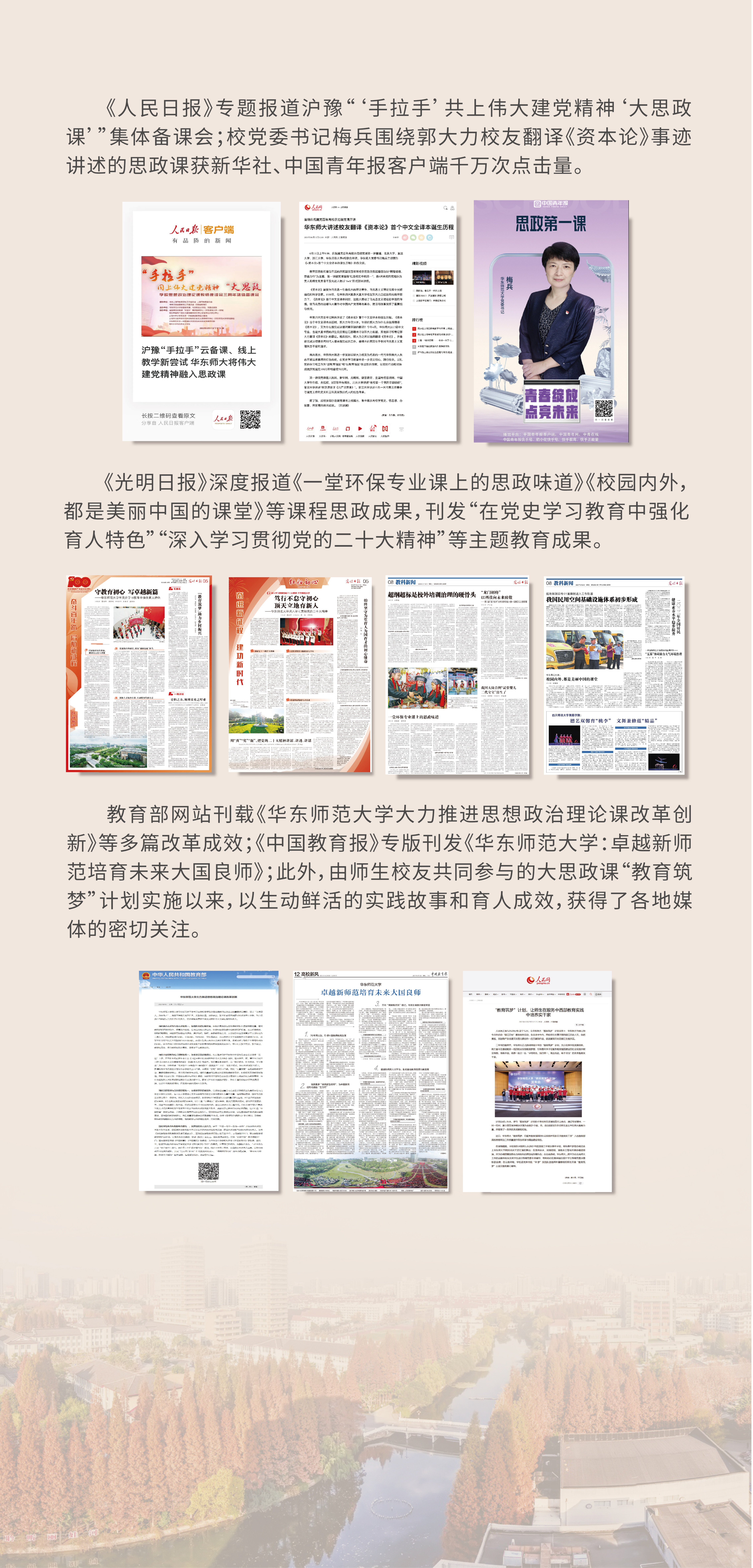 持续深化新时代思想政治理论课改革创新,五年来,以陈红娟为代表的华东师大思政课教师牢记“为党育人、为国育才”使命,依托华东师大作为教育部大中小学思政课一体化共同体建设上海市牵头高校优势,潜心研究如何“把道理讲深、讲透、讲活”,帮助学生有兴趣、有收获、有成长,引导学生扣好人生第一粒扣子。