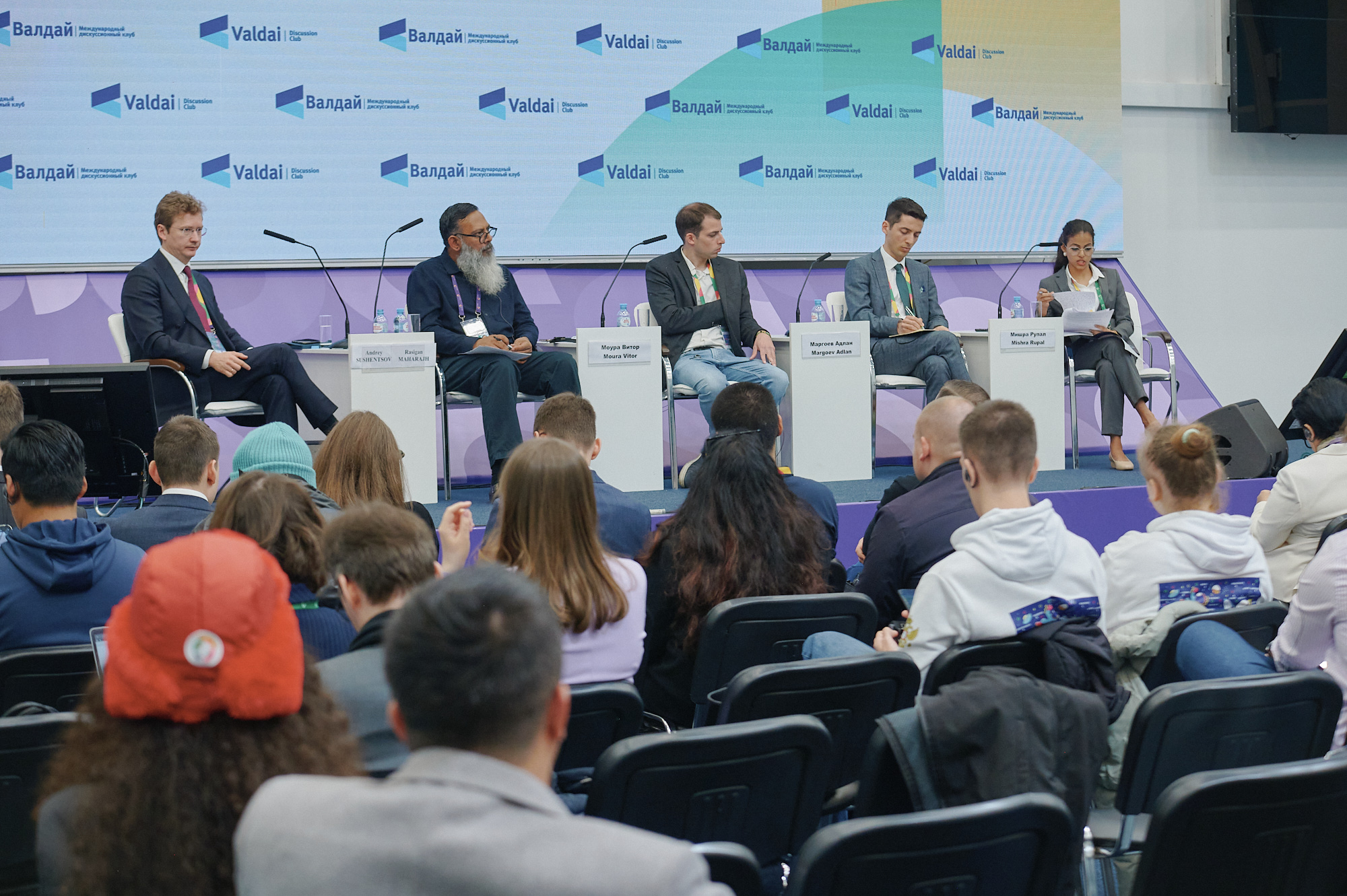 第三场研讨以“技术进步对文明的挑战和机遇”为题,由瓦尔代俱乐部项目主任、俄罗斯国际事务委员会总干事伊万·季莫费耶夫(Ivan Timofeev)主持。俄罗斯量子中心科学组组长伊利娅·谢梅里科夫(Ilya Semerikov)、南非茨瓦内理工大学创新经济研究所所长拉希姆·玛哈拉杰(Rasigan Maharajh)、数字印度基金会负责人兼联合创始人阿文·古普塔(Arvind Gupta)作主题发言。资深专家和在场青年学者围绕人工智能、技术主权、新殖民主义等关键词,探讨科技革命背景下人类世界,特别是发展中国家面临的机遇与挑战。