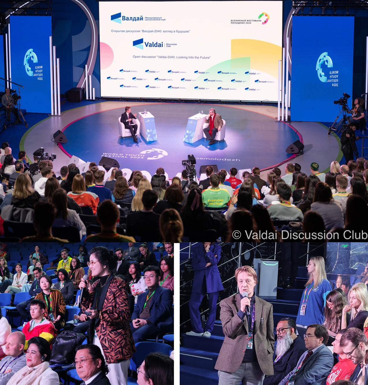本届青年论坛作为瓦尔代俱乐部在2024年推出的新项目“瓦尔代-新世代”(Valdai-New Generation)的一部分,在俄罗斯2024世界青年联欢节的框架下举行。论坛以“2040年的世界”为题,首次邀请了来自世界各地的青年学者与资深专家共聚一堂,通过各代学人之间的对话,刻画关于未来世界的愿景。多位瓦尔代俱乐部成员、资深国际问题研究专家,与数十位来自俄罗斯、中国、巴西、法国、印度、埃及、加纳、印度尼西亚和南非等国的青年学者以及上百名青年观众一同参与会议。