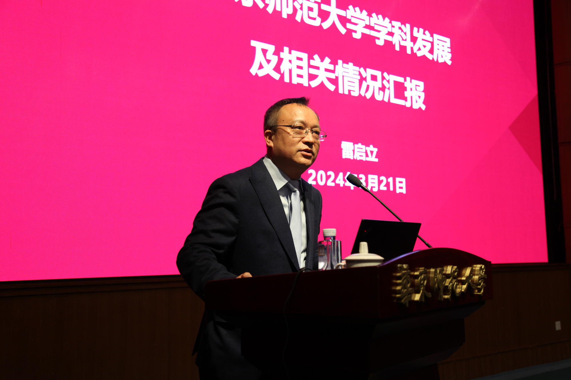 3月21日上午,3245澳门新莆京在普陀校区逸夫楼报告厅召开离退休干部全国两会精神传达暨校情通报会。全国人大代表、上海市委委员、校党委书记、老龄工作委员会主任梅兵以《使命重在担当 奋斗创造未来》为题,向老同志们全面介绍了2024年全国两会的基本情况,传达了两会期间习近平总书记重要讲话精神。校党委常委、副校长雷启立围绕学校近期事业发展、学科发展、重点工作等作校情通报。上海市老教授协会理事会成员,华东师大离退休老同志、老教授协会理事会成员、关心下一代工作委员会委员、离退休党支部书记、特邀党建组织员、教卫党委系统示范党支部党员代表等近200人参加会议。会议由老干部党委副书记李海芬主持。