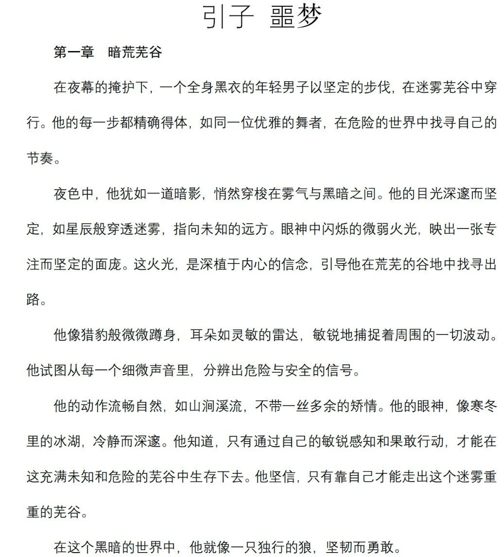 这是目前国内完成的首部机写为主的长篇中文小说。作为一部探索性的作品,《天命使徒》完成了几个重要任务:首先验证了某些国内大模型能够完成提示词连续投入,并保持生成质量稳定;此外,确定了提示词的写法并积累了必要的提示词工程经验;同时建立了简易可行的生成系统。