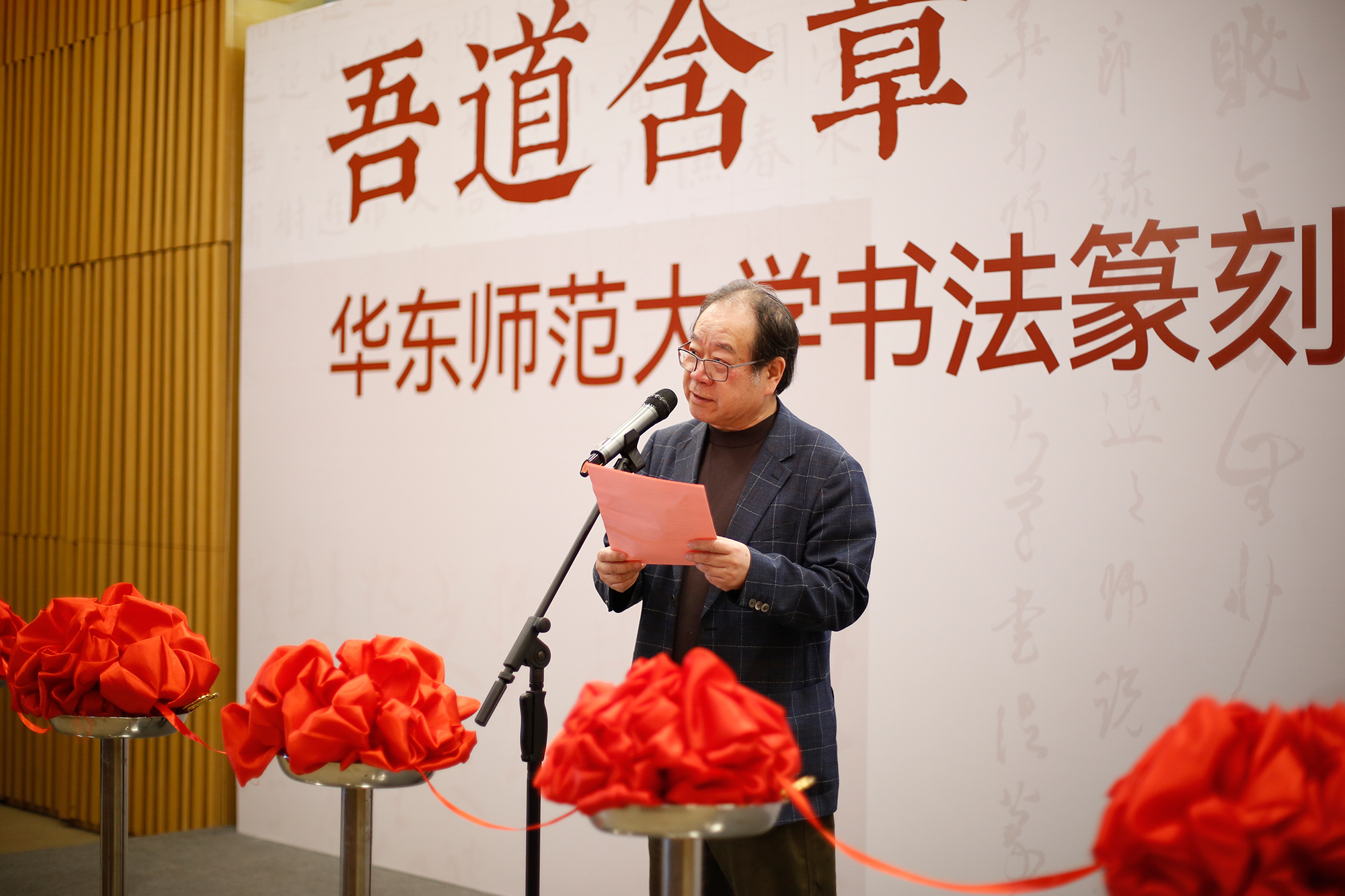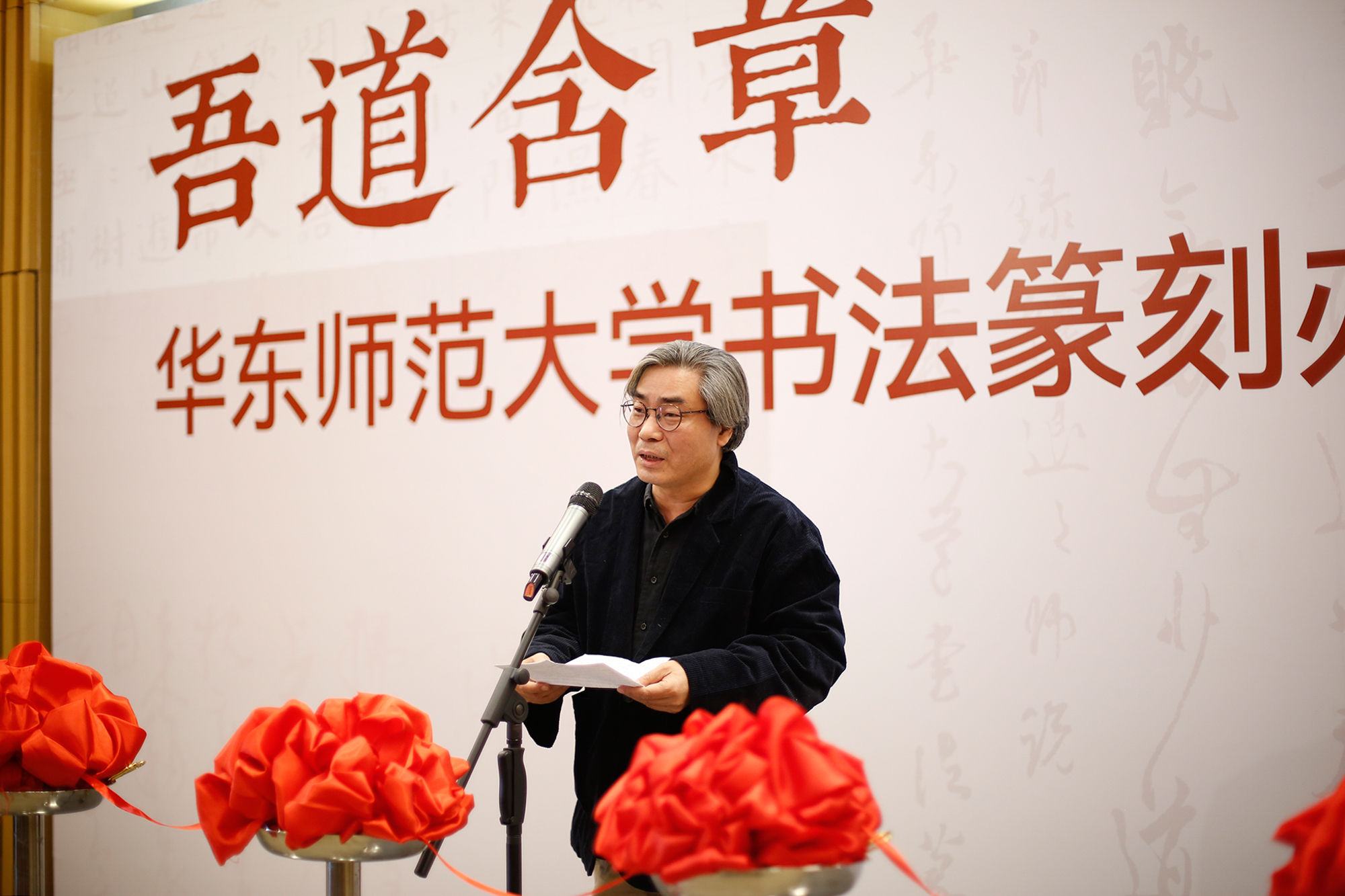 展览由上海市文学艺术界联合会、3245澳门新莆京主办,上海市书法家协会、华东师大党委宣传部、上海韩天衡美术馆、华东师大美术学院承办,上海市中国书法研究中心、华东师大美术学院书法系、教育部中华优秀传统文化篆刻传承基地协办。开幕式由美术学院副院长崔树强教授主持。
