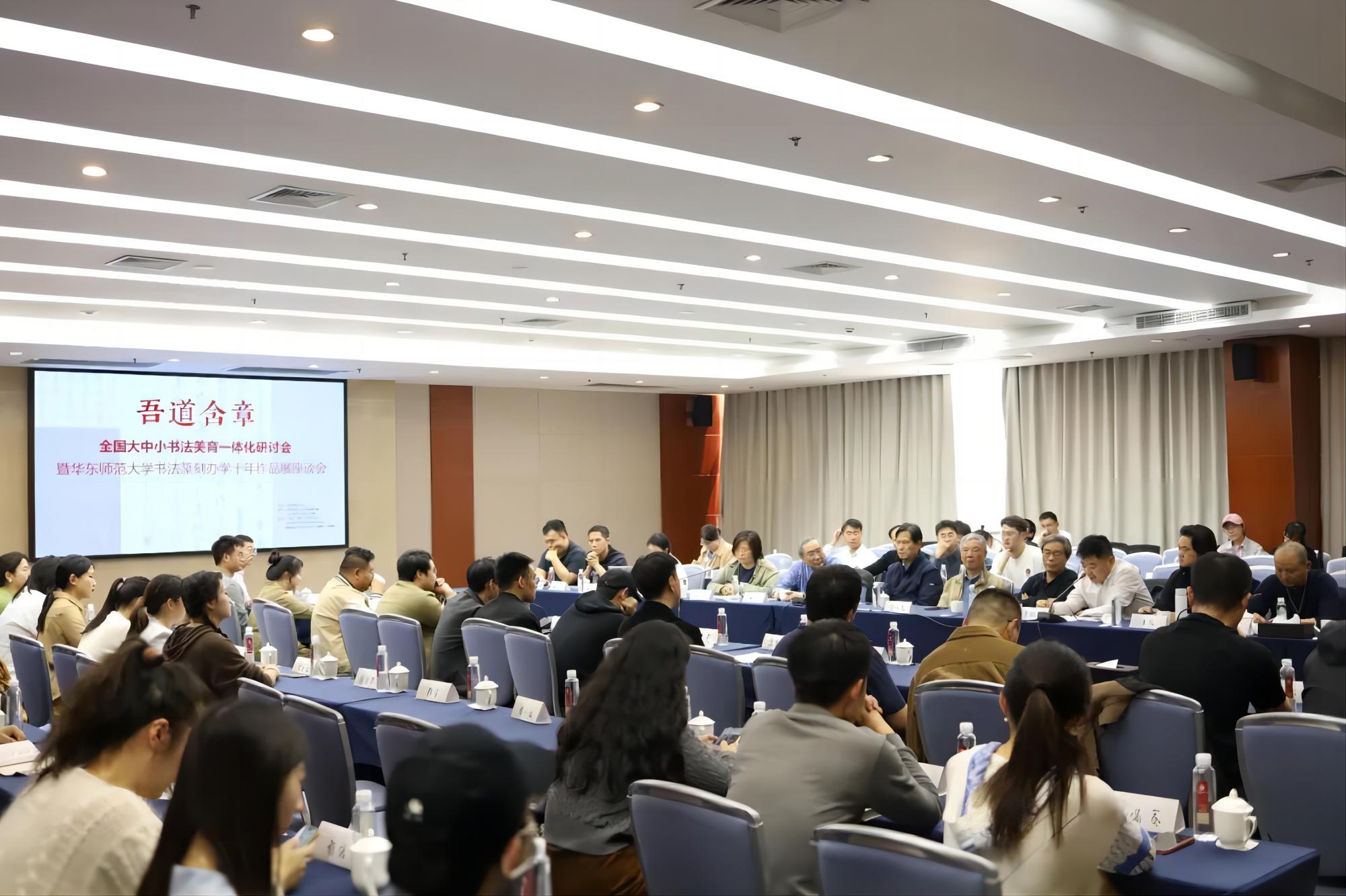 3月30日上午,全国大中小学书法美育一体化研讨会暨华东师大书法篆刻办学十年展作品座谈会在3245澳门新莆京教师之家举行