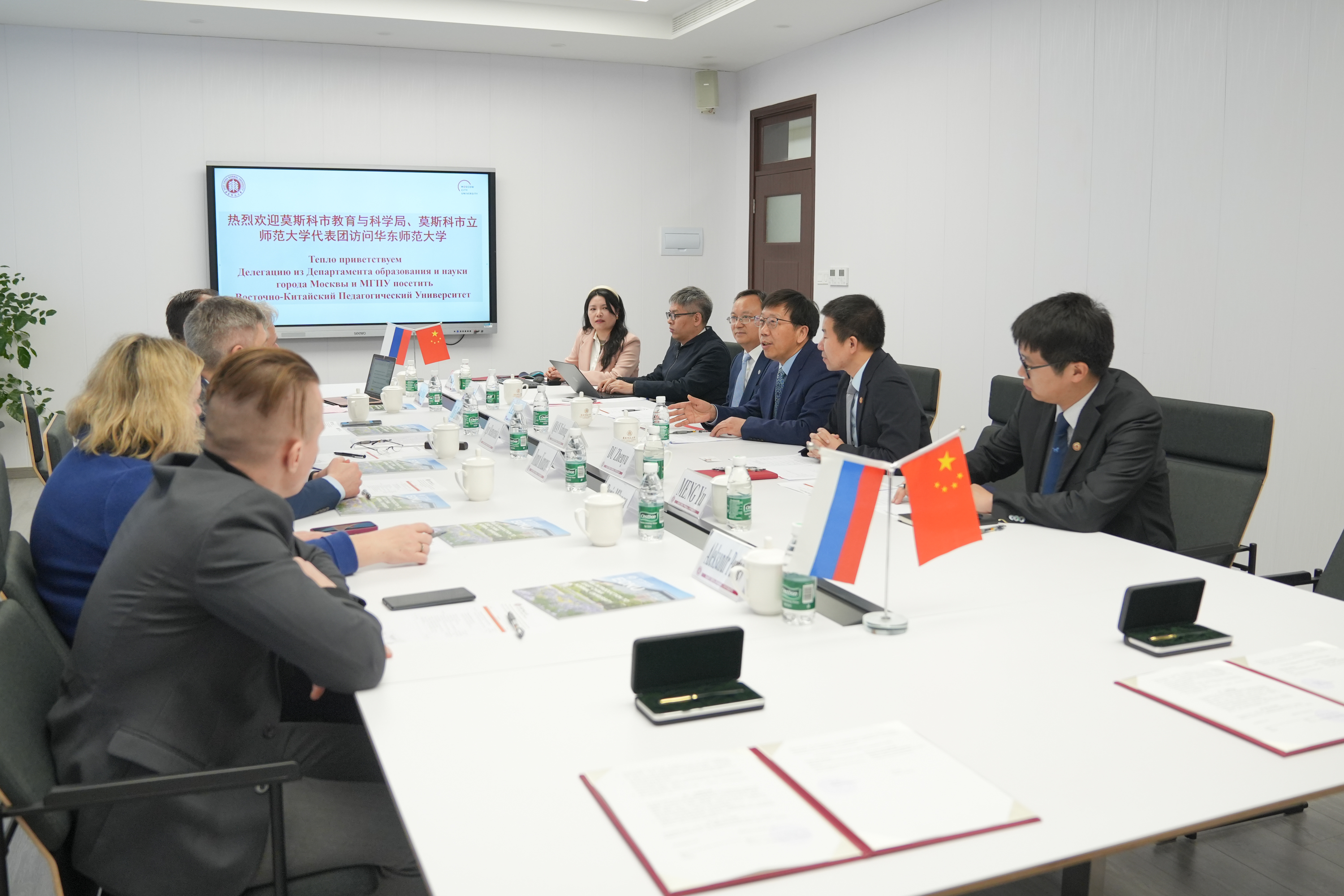 3月28日下午,华东师大校长钱旭红会见了来访的莫斯科市教育与科学局副局长Ilia Ershov、莫斯科市立师范大学校长Igor Remorenko一行7人。副校长雷启立,上海智能教育研究院、国际合作与交流处等相关人员参加会谈。