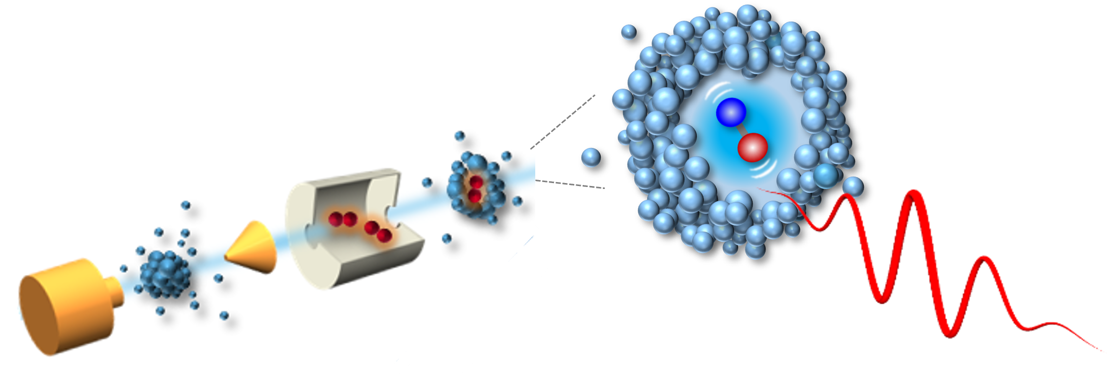 图1. 超流氦液滴体内分子振动耗散示意图