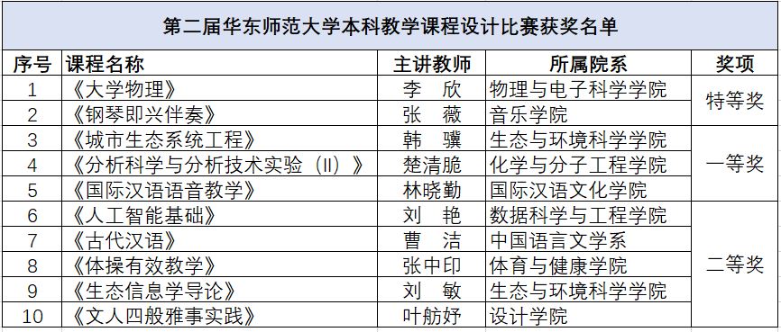 经过激烈角逐,物理与电子科学学院李欣等2位老师获得特等奖,生态与环境科学学院韩骥等3位教师获得一等奖,数据科学与工程学院刘艳等5位教师获得二等奖。
