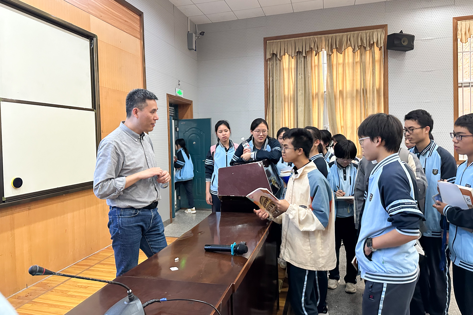 南宁三中是我校优质生源基地,孟钟捷前往南宁三中,为同学们带去了一场精彩的历史问题研究启蒙报告“德国历史发展的四个问题”,并与南宁三中校长韦屏山及我校从教校友代表座谈交流。