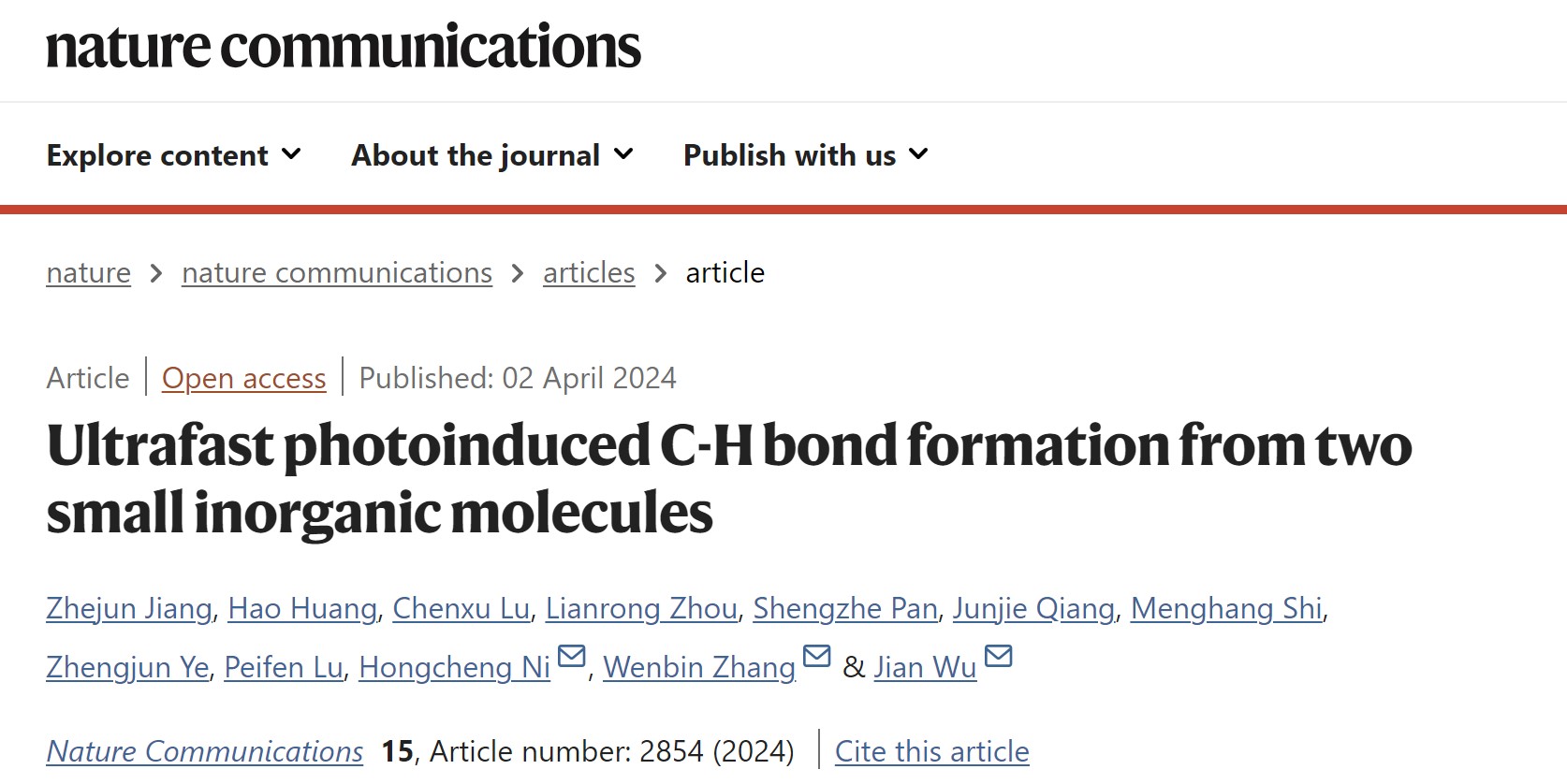 《自然通讯》刊发华东师大吴健教授科研团队研究成果