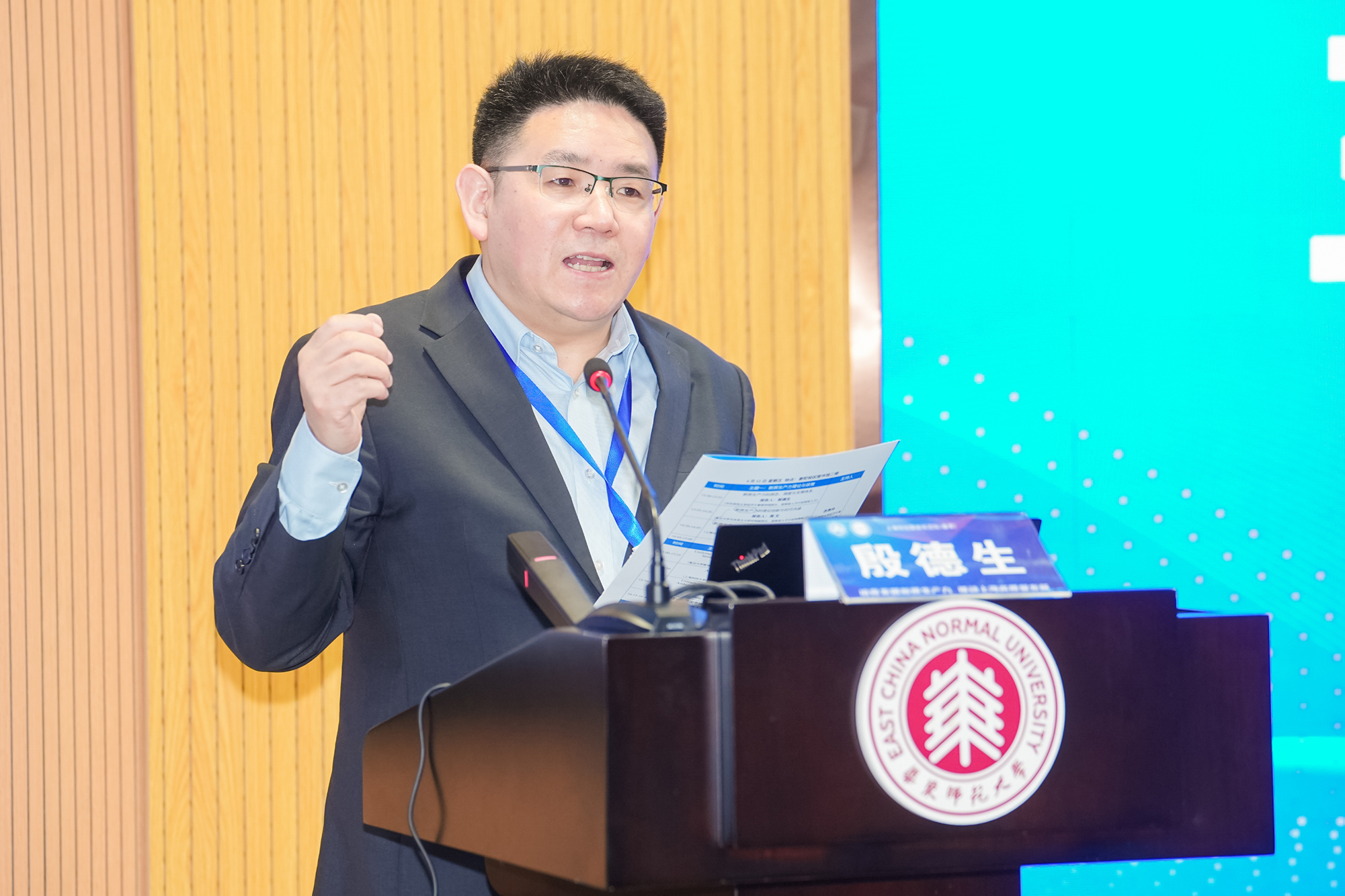 华东师大经济与管理学院院长、市经济学会副会长兼秘书长殷德生主持主旨报告