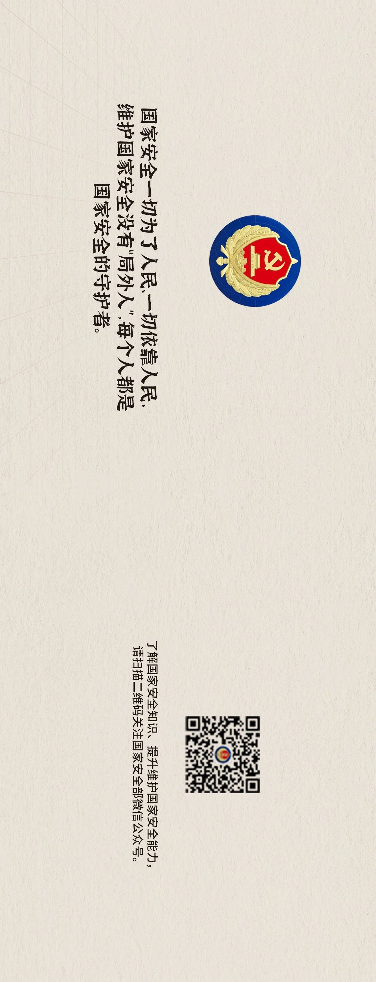 国家安全一切为了人民,一切依靠人民。你我并肩,守护山河无恙。携手前行,铸就钢铁长城!