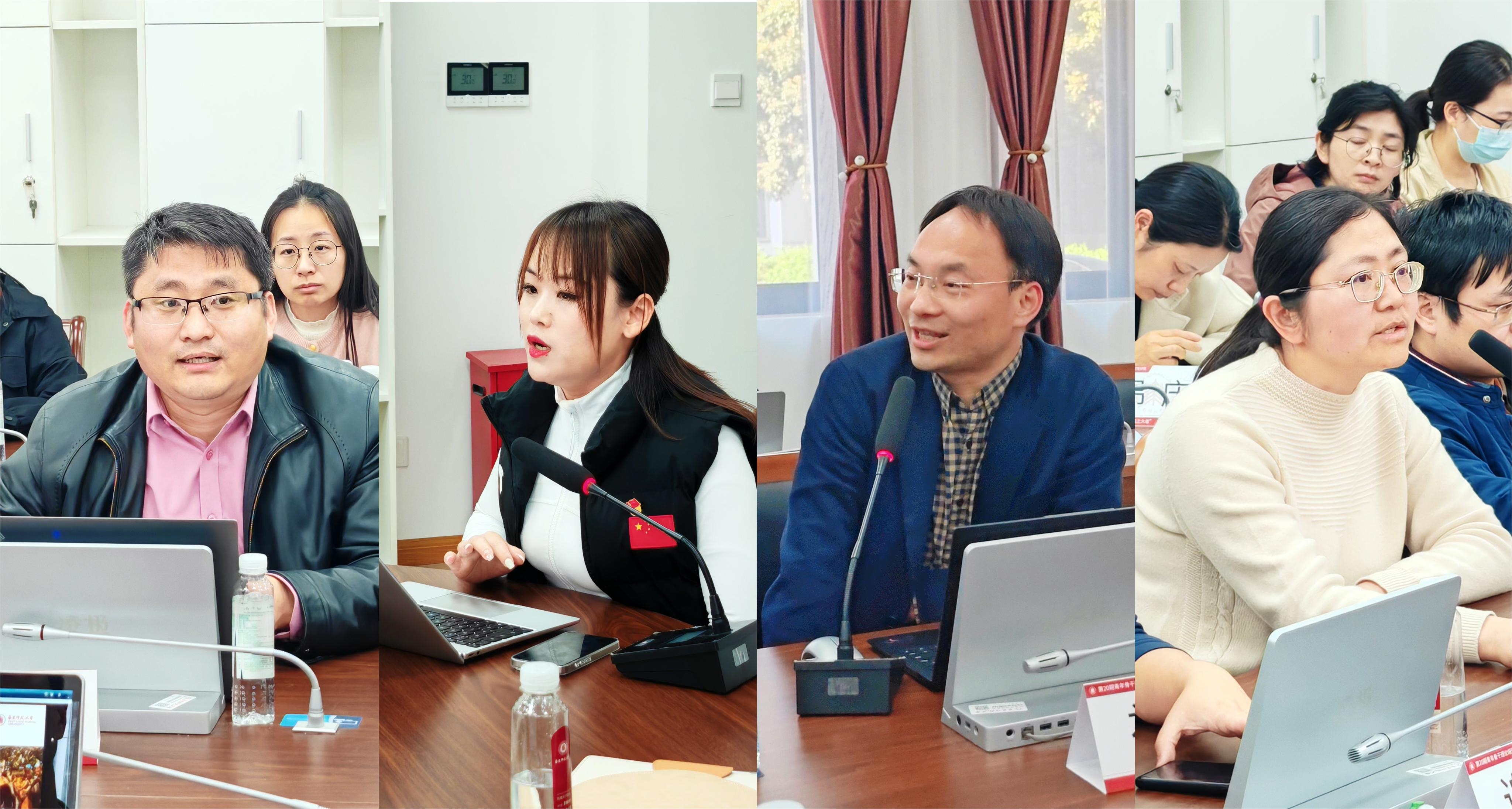 朱军文围绕“新时代年轻干部的责任担当”与学员进行交流讨论。来自法学院、国际汉语文化学院、教育学部、体育与健康学院、统计学院、物理与电子科学学院、生态与环境科学学院、生命科学学院、计算机科学与技术学院、数据科学与工程学院和管理服务部门的11位学员结合自身经历,围绕学校在发展态势、干部队伍、人才工作上存在的问题分享了自己的看法与感想。朱军文认真听取并做好记录,回应学员们提出的问题,并对年轻干部提出了四点要求:第一要放下自我,向外拓展,为学校争取更多资源;第二要有担当精神,不怕多做事;第三要追求卓越,要以更高的工作标准要求自己;第四要实现自身发展和学校事业发展相得益彰。