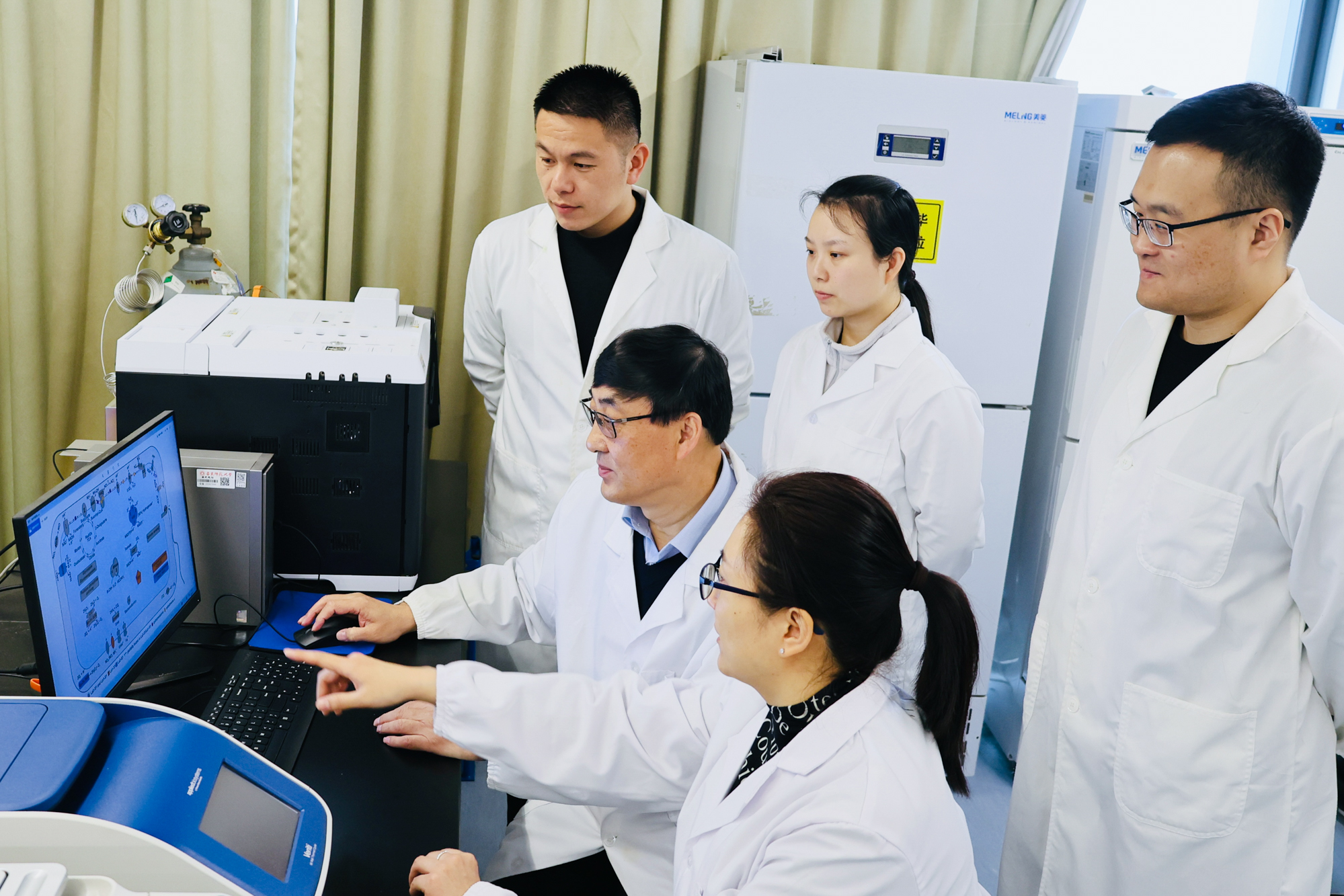 刘敏教授和韩平研究员指导团队研究生(左一为唐修峰博士生)