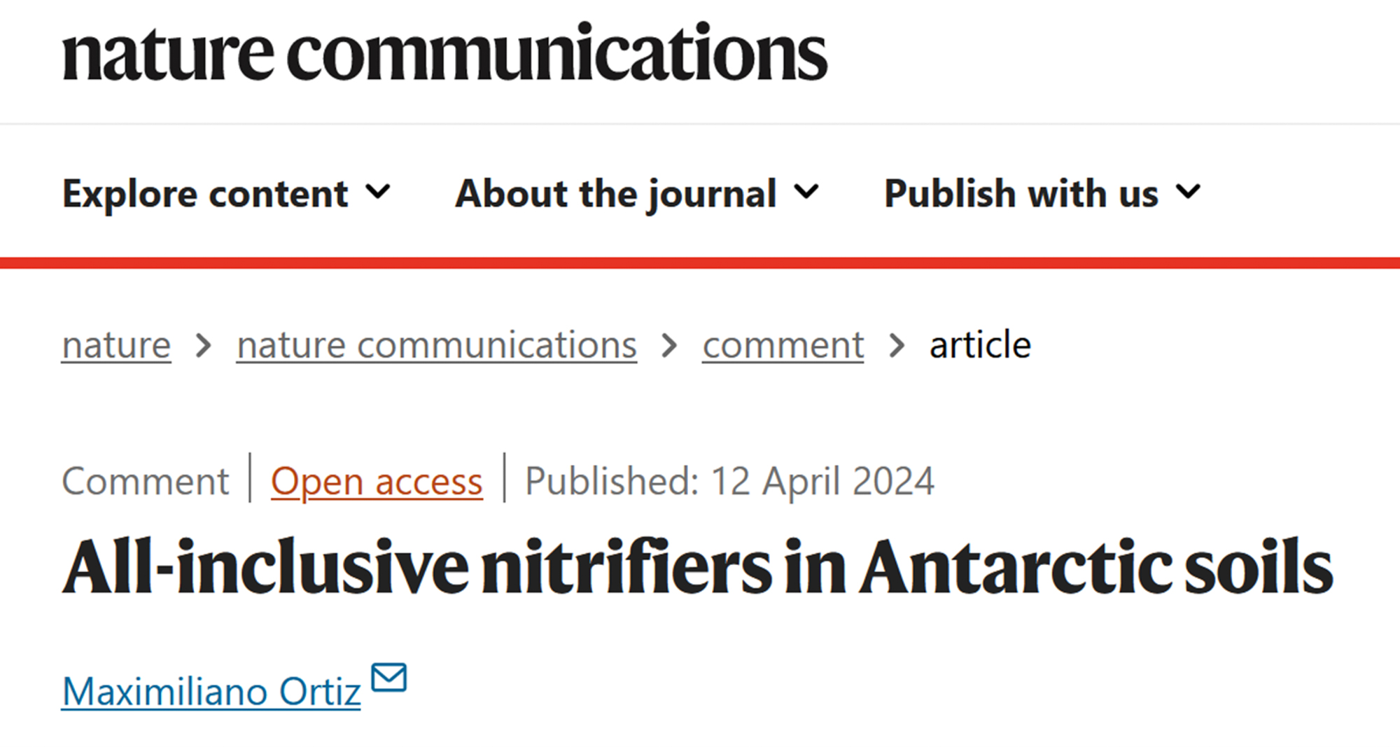 Ortiz M. All-inclusive nitrifiers in Antarctic soils. Nature Communications, 2024, 15(1): 3144.https://rdcu.be/dEUS5