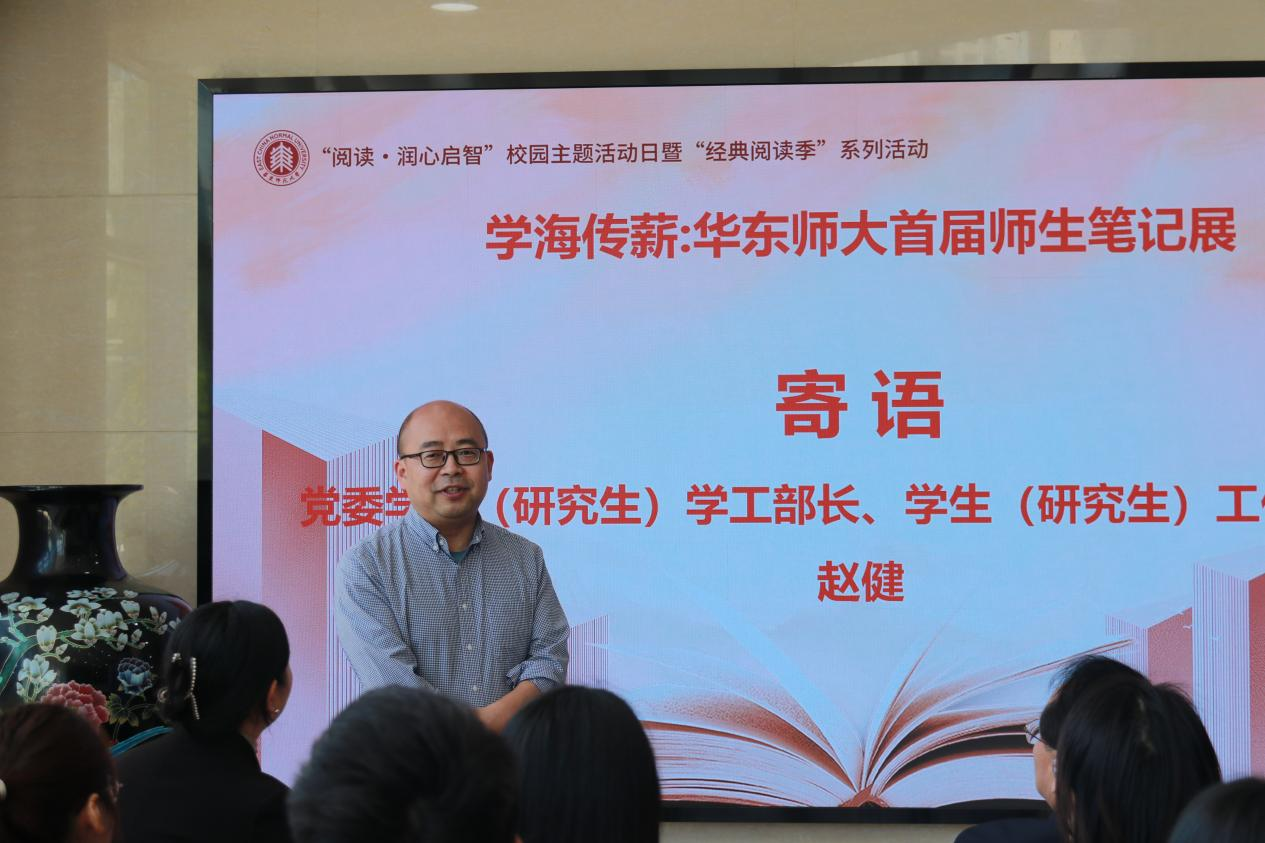 赵健在对学生寄语中指出,本次展览是“阅读·润心启智”校园主题活动日暨“经典阅读季”系列活动的一次重要活动,展现出华东师大的学术繁荣与文化传承,希望同学们能够传承师大前辈严谨的治学态度和卓越的学习习惯,争做新时代的卓越青年。