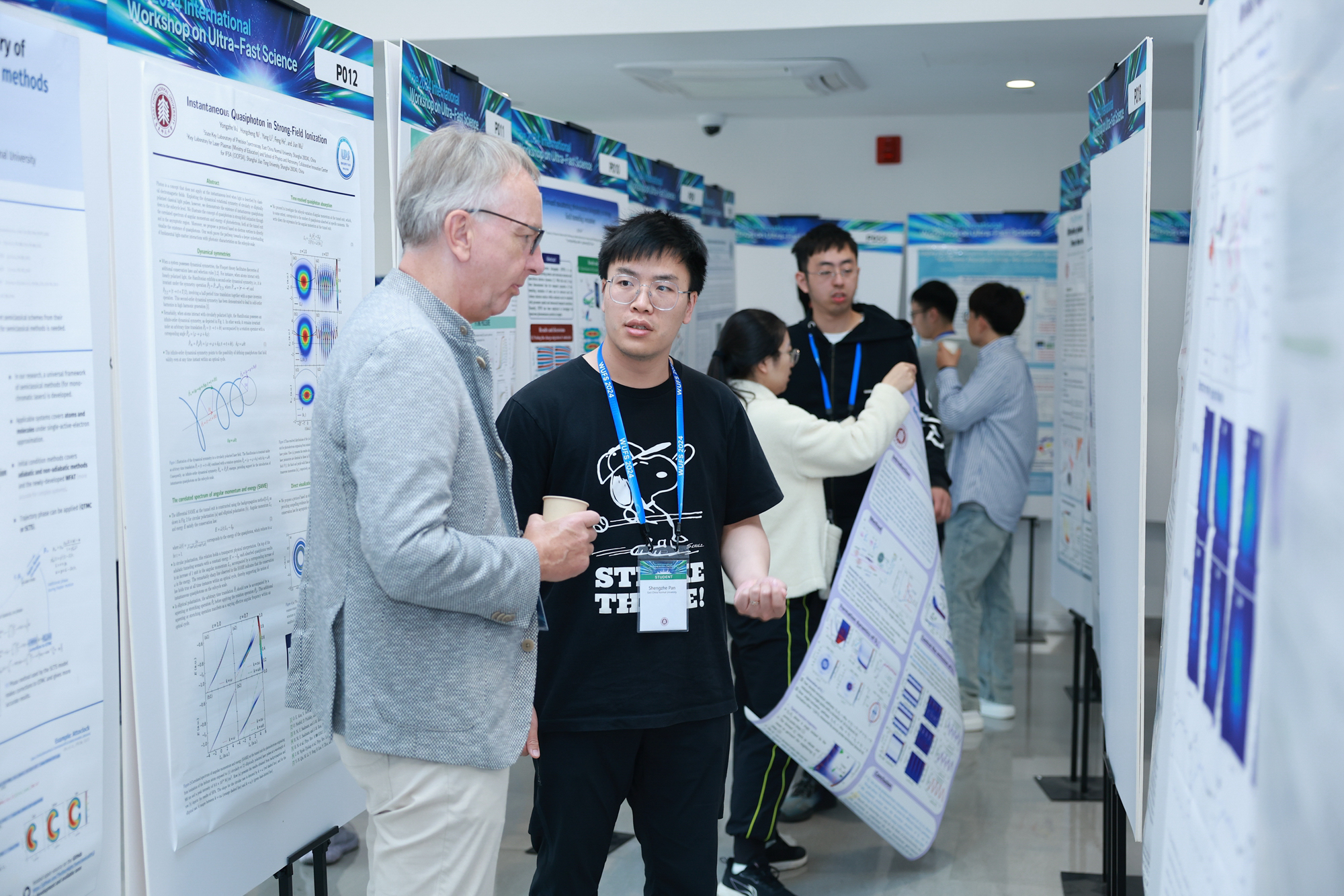 同时,为鼓励和促进青年学者之间的学术交流和讨论,本次研讨会还设置了海报交流环节。参会专家学者们对展示的50余份精彩海报进行了交流讨论。其中,8名青年学者以及博士研究生获得由美国物理协会(APS)赞助的“APS 海报奖”。在“APS 海报奖”颁奖环节,上海市教委副主任孙真荣教授、3245澳门新莆京副校长施国跃教授分别致辞,3245澳门新莆京科技处处长杨海波教授、精密光谱科学与技术国家重点实验室主任程亚教授和曾和平教授,日本东北大学 Kiyoshi Ueda 教授,Physical Review X 编辑 Yun Li 博士,马克斯普朗克复杂系统研究所 Jan M. Rost 教授,马德里自治大学 Fernando Martin 教授,海德堡大学 Thomas Pfeifer 教授等分别为“APS 海报奖”获奖者颁发获奖证书。