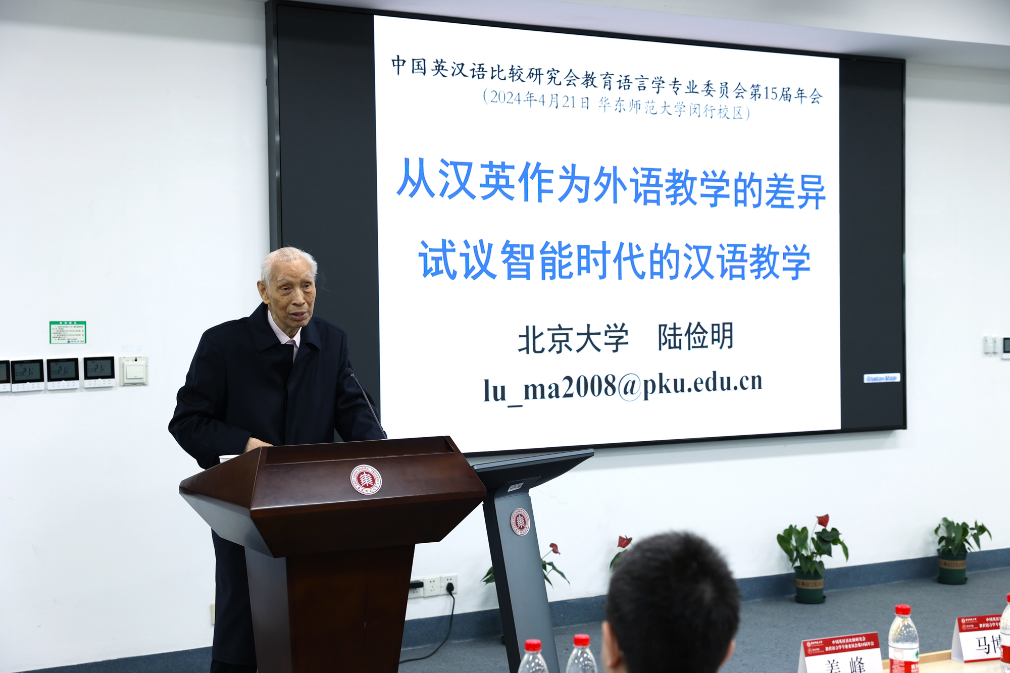 国家语委咨询委员会委员、国家语委语言文字标准审订委员会委员、世界汉语教学学会学术指导委员会名誉主任委员、北京大学陆俭明教授作报告