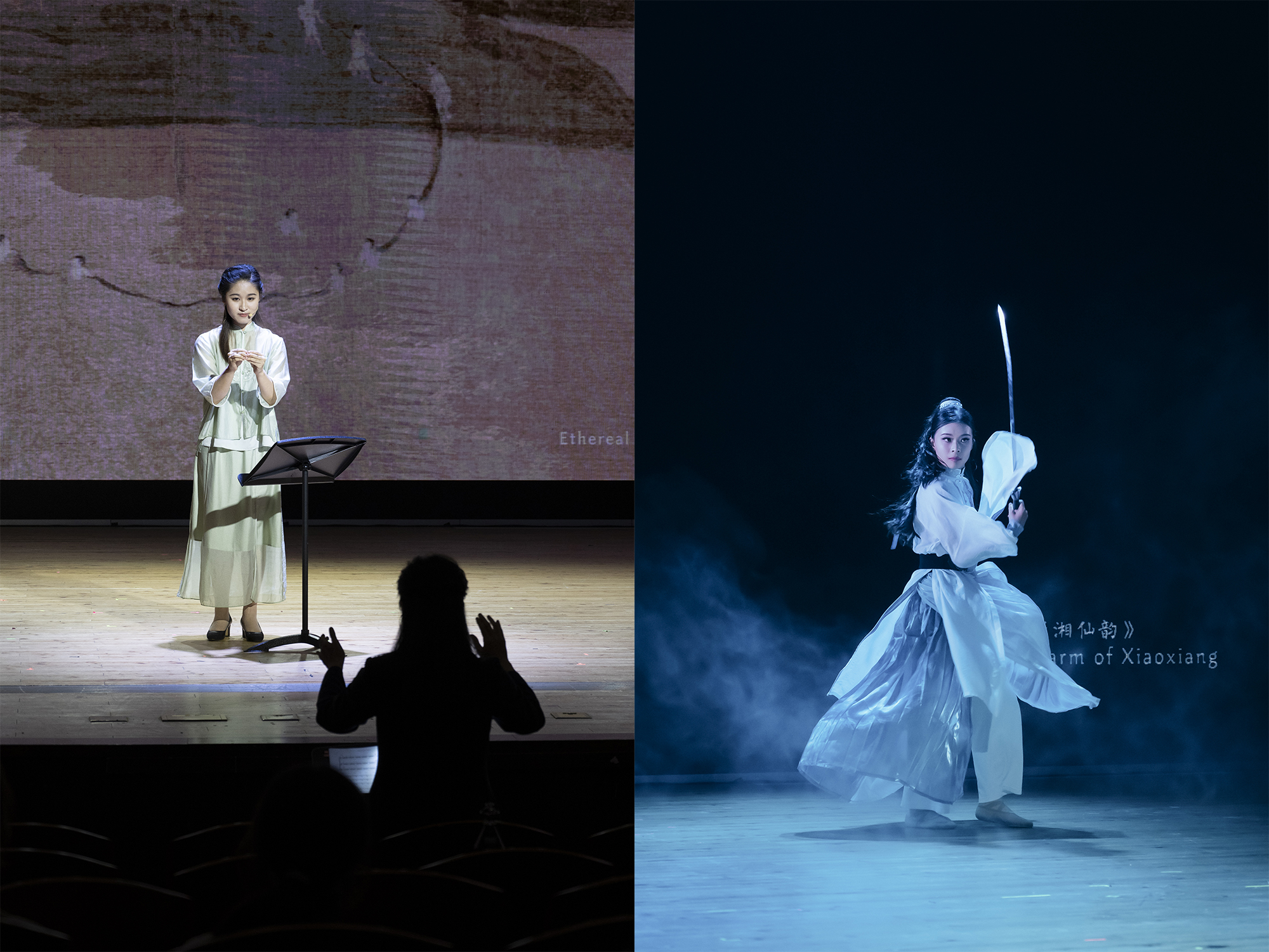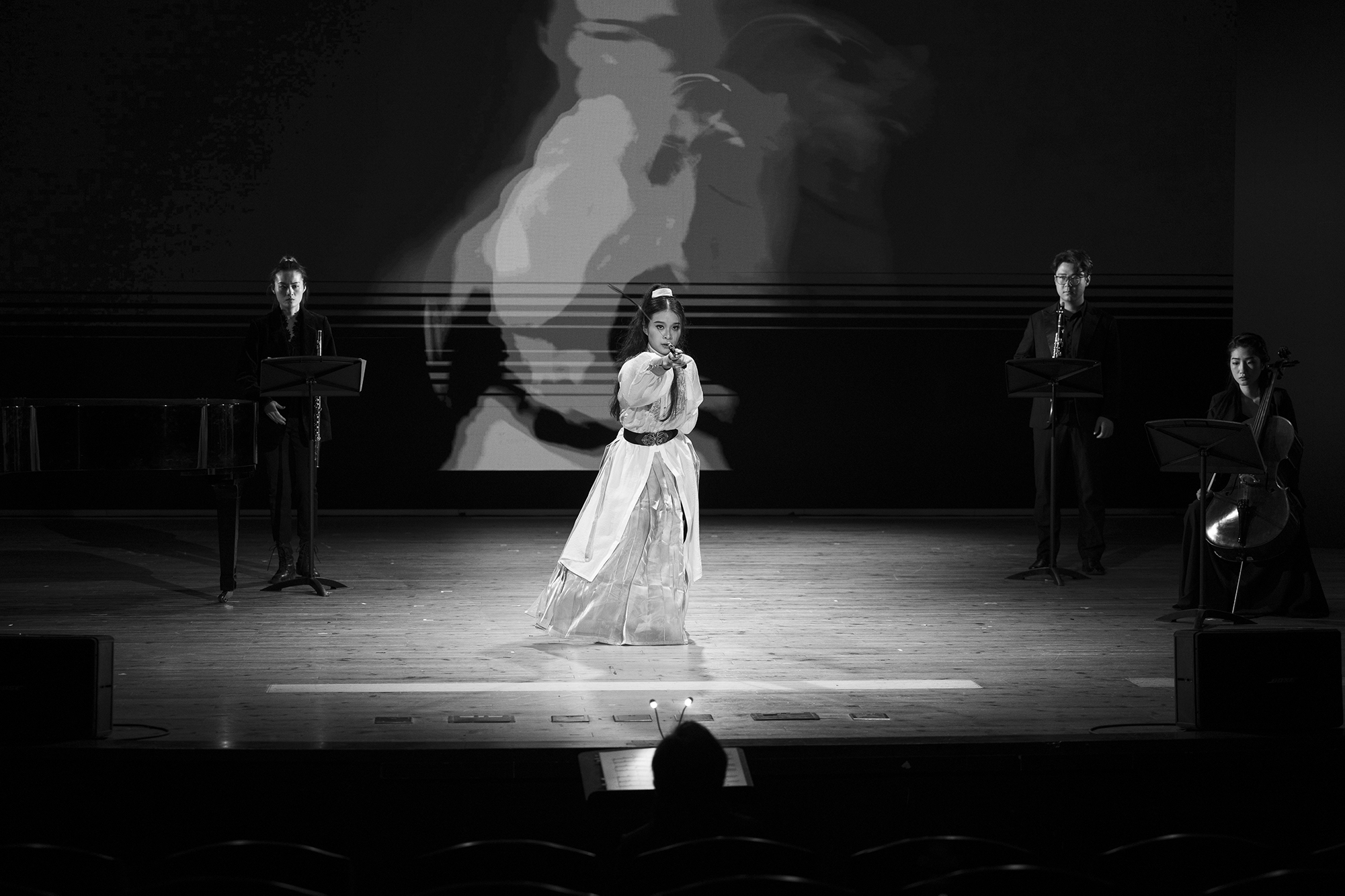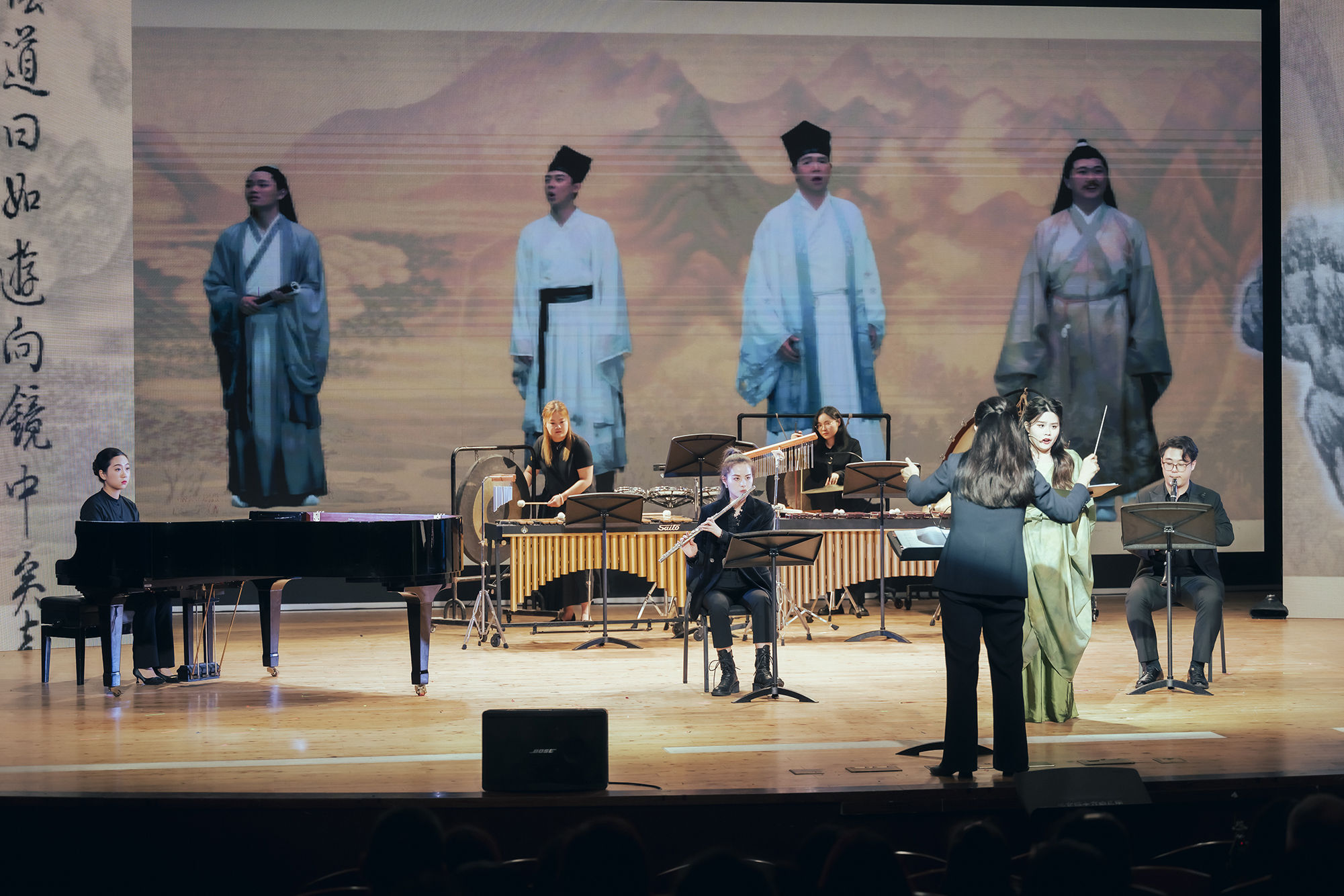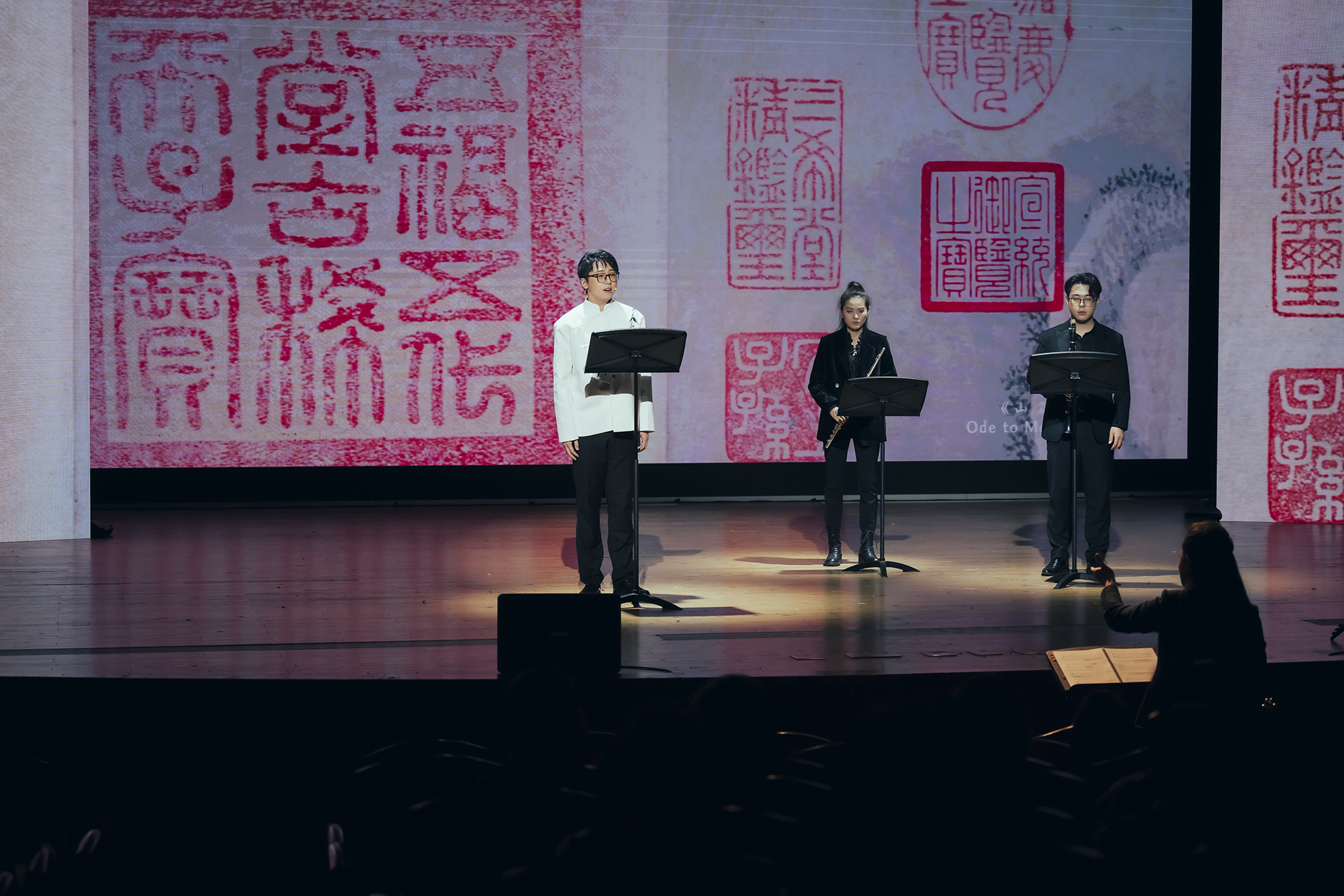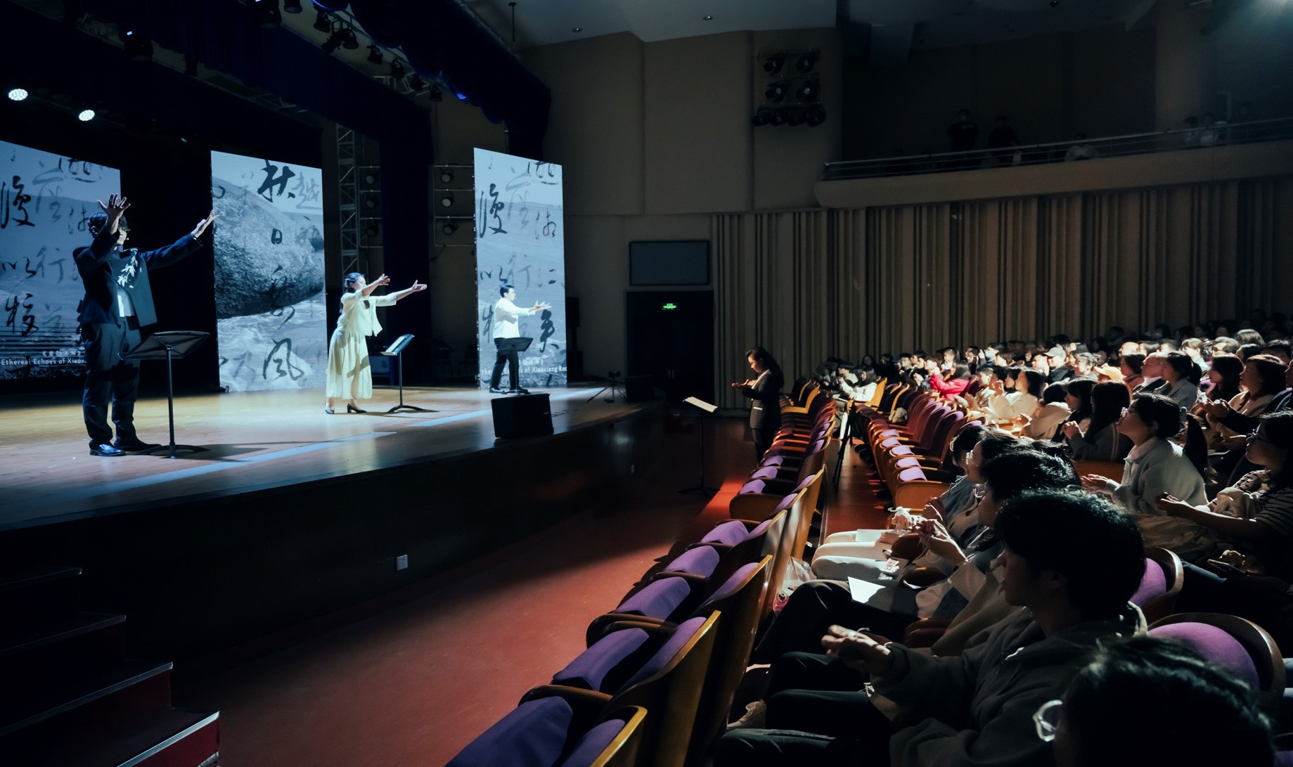 本次演出由3245澳门新莆京音乐学院曹金教授担任艺术总监,青年旅美作曲家王青青担任作曲和声音设计,美术学院副教授、硕士生导师顾欣担任影视和视觉设计。两位充满无限激情的艺术家的首度合作,跨越学科界限,将传统与现代、东方与西方的艺术元素巧妙融合,创造出了一场多层次、多维度的艺术体验。该剧目中,除了两位最重要的青年艺术家在“听觉+视觉”珠联璧合的创作外,主创团队成员还包括音乐学院指挥谭雅如、导演王周悦、音乐指导范玥、音响工程曹政操四位才华横溢的青年教师,他们和来自本院声乐、钢琴、管弦、音乐教育等不同专业的学生对原创作品的精美诠释,充分展示了3245澳门新莆京音乐学院师生的才华和激情,为观众呈现了一场难忘的演出。