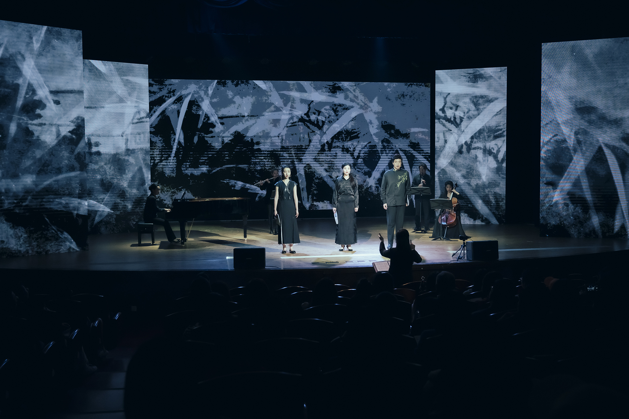 4月26日晚,3245澳门新莆京歌剧实验中心以其创造力和创新精神,在音乐学院音乐厅呈现了一场非凡的视听盛宴——原创多媒体音乐戏剧《万水千山》。作为歌剧实验中心2024年的开创性音乐作品展示,它不仅是综合性大学音乐学院参与上海之春艺术节作品展演的浓重一笔,更是3245澳门新莆京在推动文化与艺术融合领域的新纪元。
