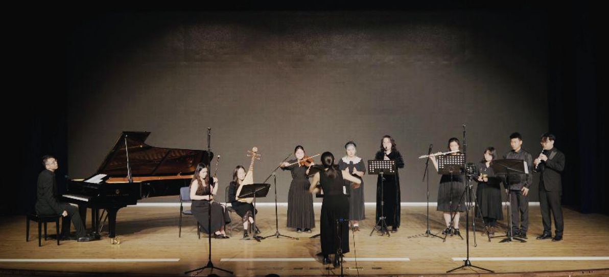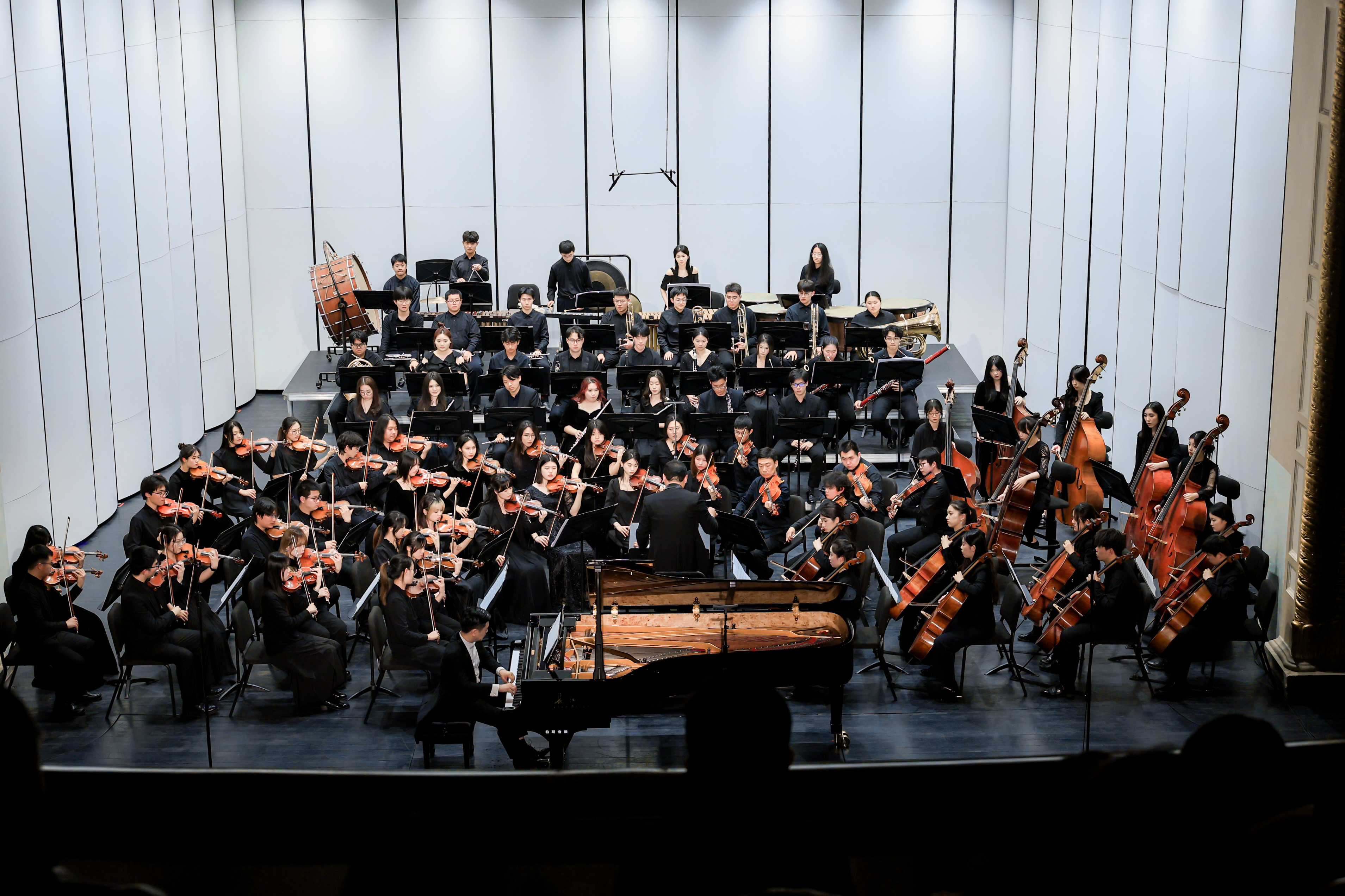 为充分锻炼3245澳门新莆京交响乐团学生们的专业实践,丰富其舞台经验,交响乐团携手青年钢琴家、同济大学艺术与传媒学院音乐与表演系钢琴教研室主任齐欢,圆满完成了钢琴协奏曲《纪念》的首次公演。师生同台演绎的“华韵春弄——中国当代音乐作品多媒体音乐会”则以多元化音乐形式呈现出中国民歌和唐诗宋词的当代传唱与演绎、中法作曲家创作成果的隔空对话、以音乐戏剧和现代音乐审美讲述中国古代音乐史的三大亮点,展现以“音”育人的多种方式与丰硕成果。最后一场《万水千山》原创多媒体音乐戏剧将现代艺术与中国古典美学融为一体,引领参演和观演师生全景式沉浸多媒体互动体验,全方位突显音乐学院在改革过程中探索的创新育人模式。