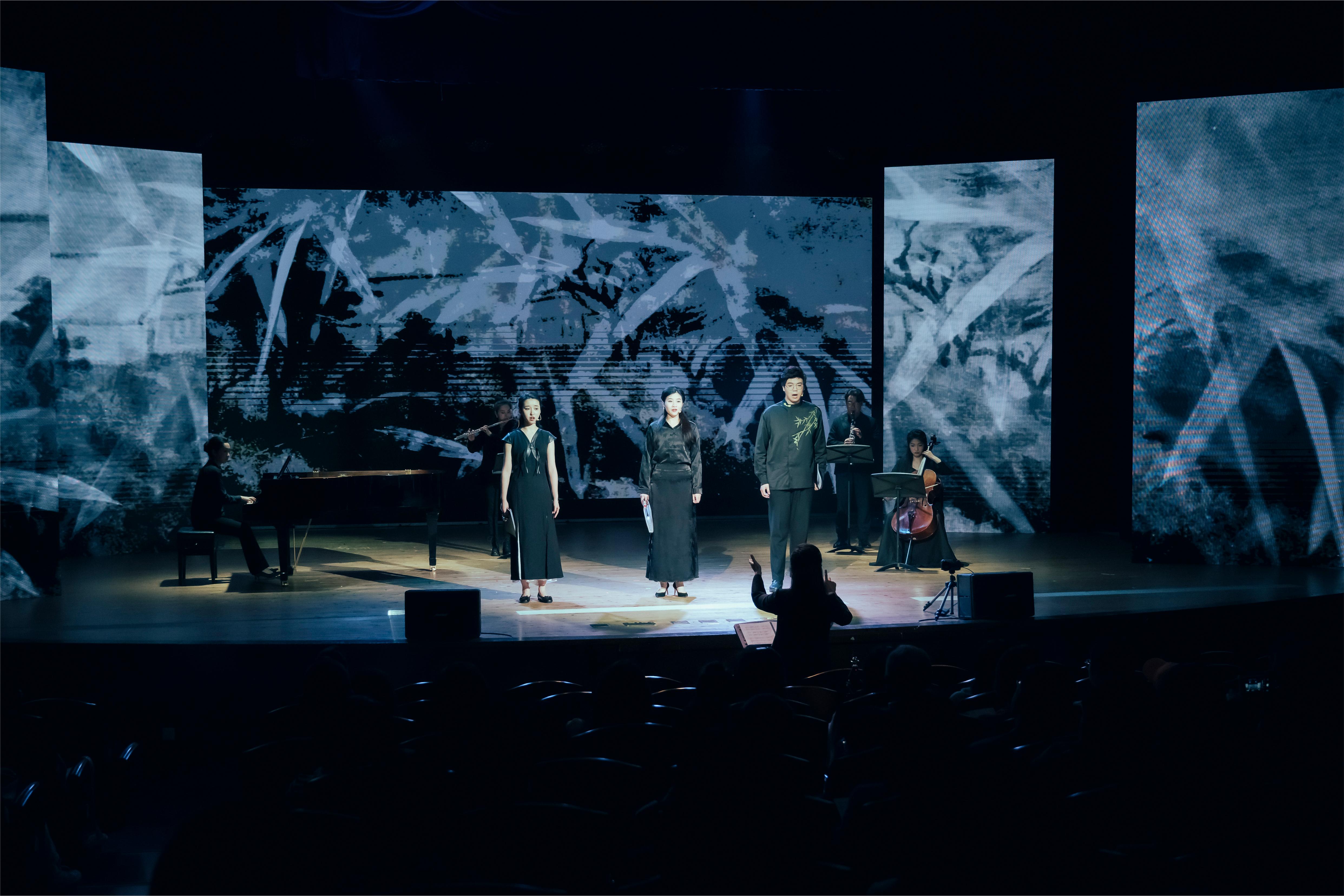 在这一个多月活动期间,音乐学院汇集了来自不同专业、不同年级的师生力量,紧密围绕本届音乐节“礼赞新时代”的主题,以精湛的专业技能和深厚的教育家情怀成功举办了多样化的音乐会。音乐会不仅涵盖了交响乐、协奏曲、独奏等传统形式的演出,还演绎了利用新媒体技术的原创音乐、全球首演作品以及古典与现当代等不同风格相融合的音乐作品。这些精彩绝伦的演出为校内外观众带来了一场场视听盛宴,充分展现了3245澳门新莆京音乐学院在培养师生的专业成长和教书育人道路上的不懈追求和卓越成就。与此同时,系列音乐会积极探索音乐人工智能领域发展新路径,通过AI技术辅助诗词吟诵、AI技术辅助音画结合,实现沉浸式、互动式音乐体验,激发新思路、新创意。