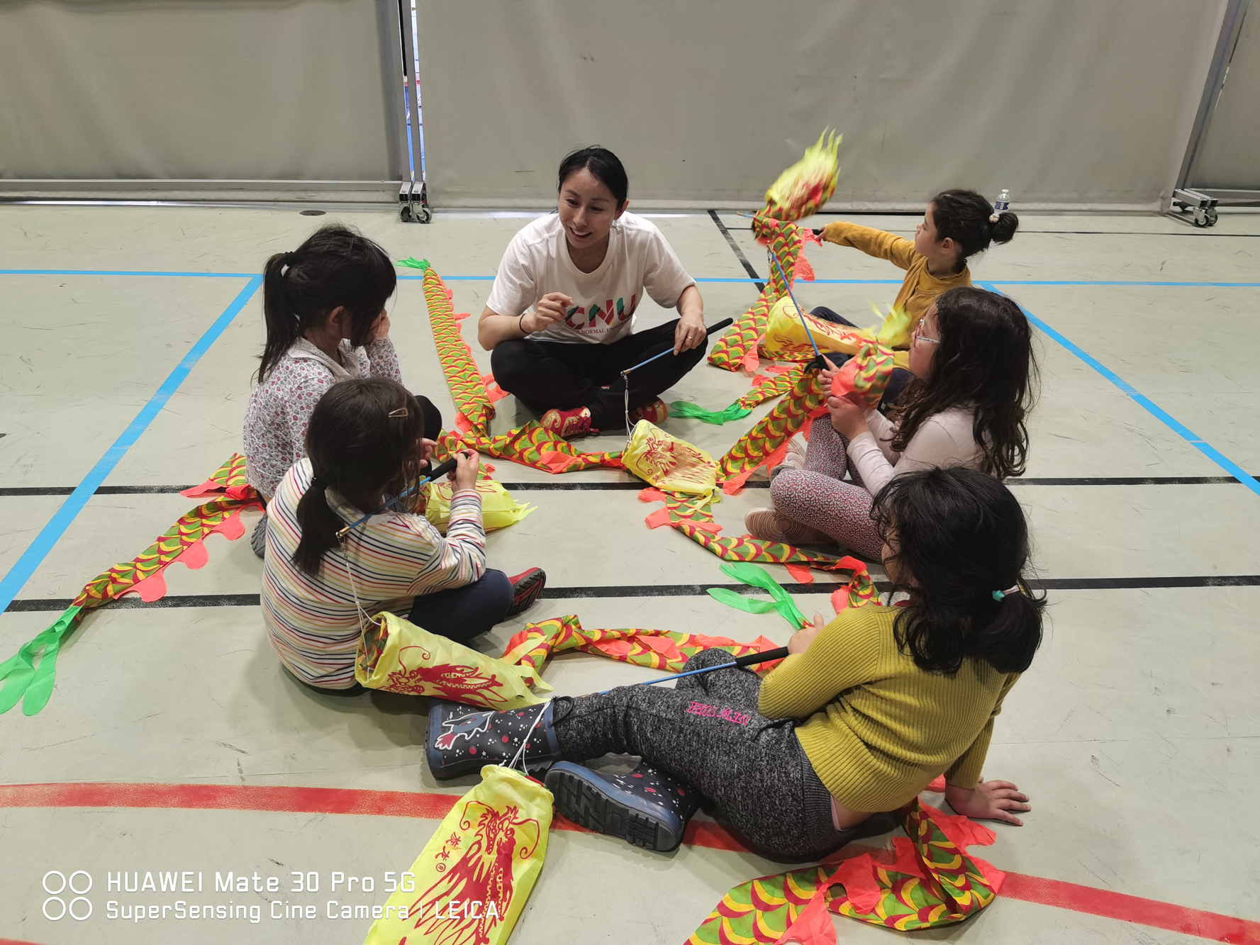 在里昂国际学校,那些活泼好动的一年级小朋友们让我眼前一亮。他们对武龙表现出了浓厚的兴趣,不仅认真投入,而且展现出了丰富的创造力和想象力,将武龙展现得千变万化、形式多样,整个交流活动充满了活力和色彩。