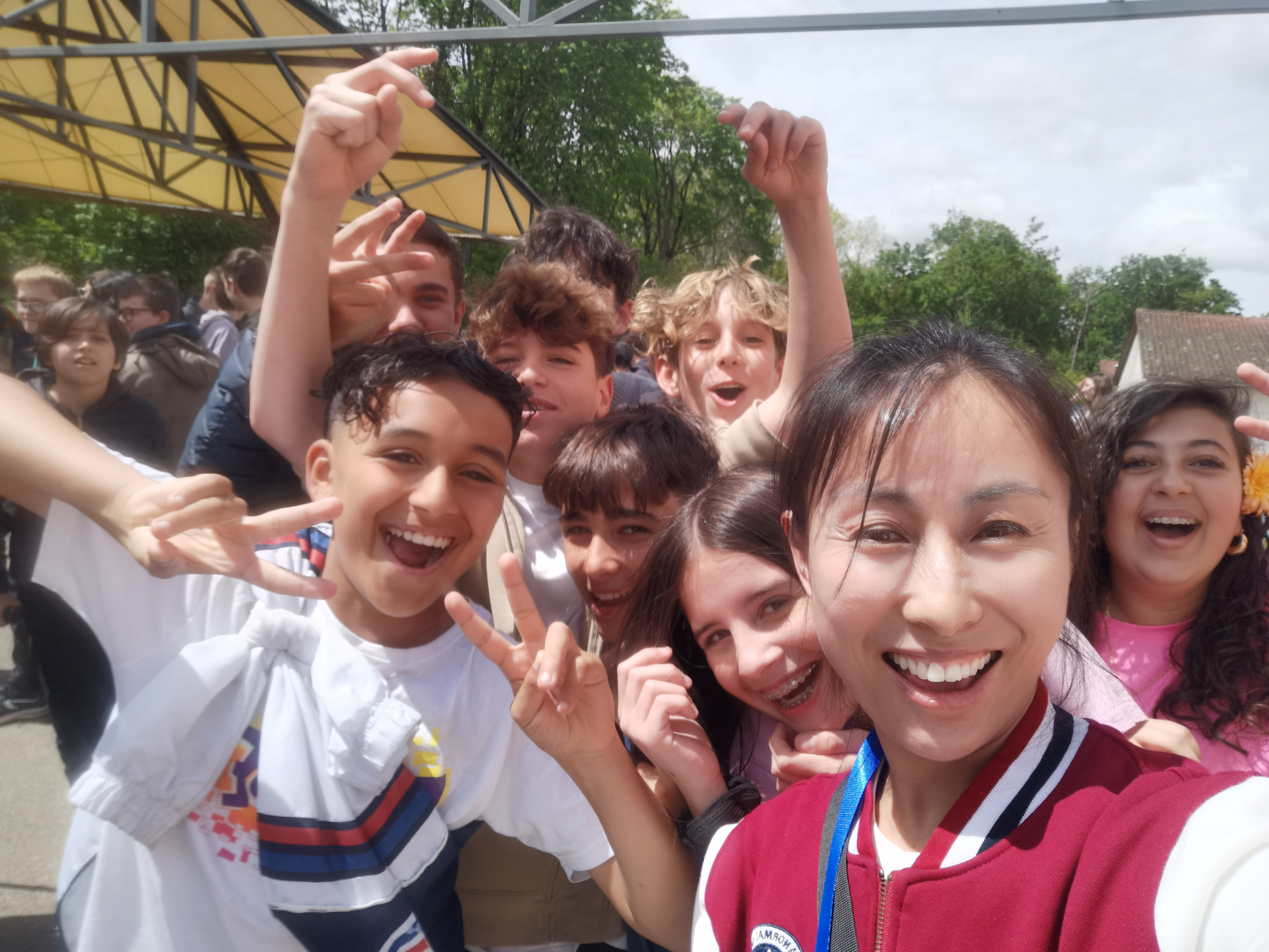 5月3日在路易·莱普林斯—林盖中学,那里的同学们虽然年纪尚轻,但他们对中华文化的热情却无比高涨,让我深受感动,同学们纷纷选择了富有中国传统文化内涵的汉字,如“家”“中”“国”“爱”等,这些汉字不仅体现了他们对中国的热爱,也象征了中法两国之间的深厚友谊。